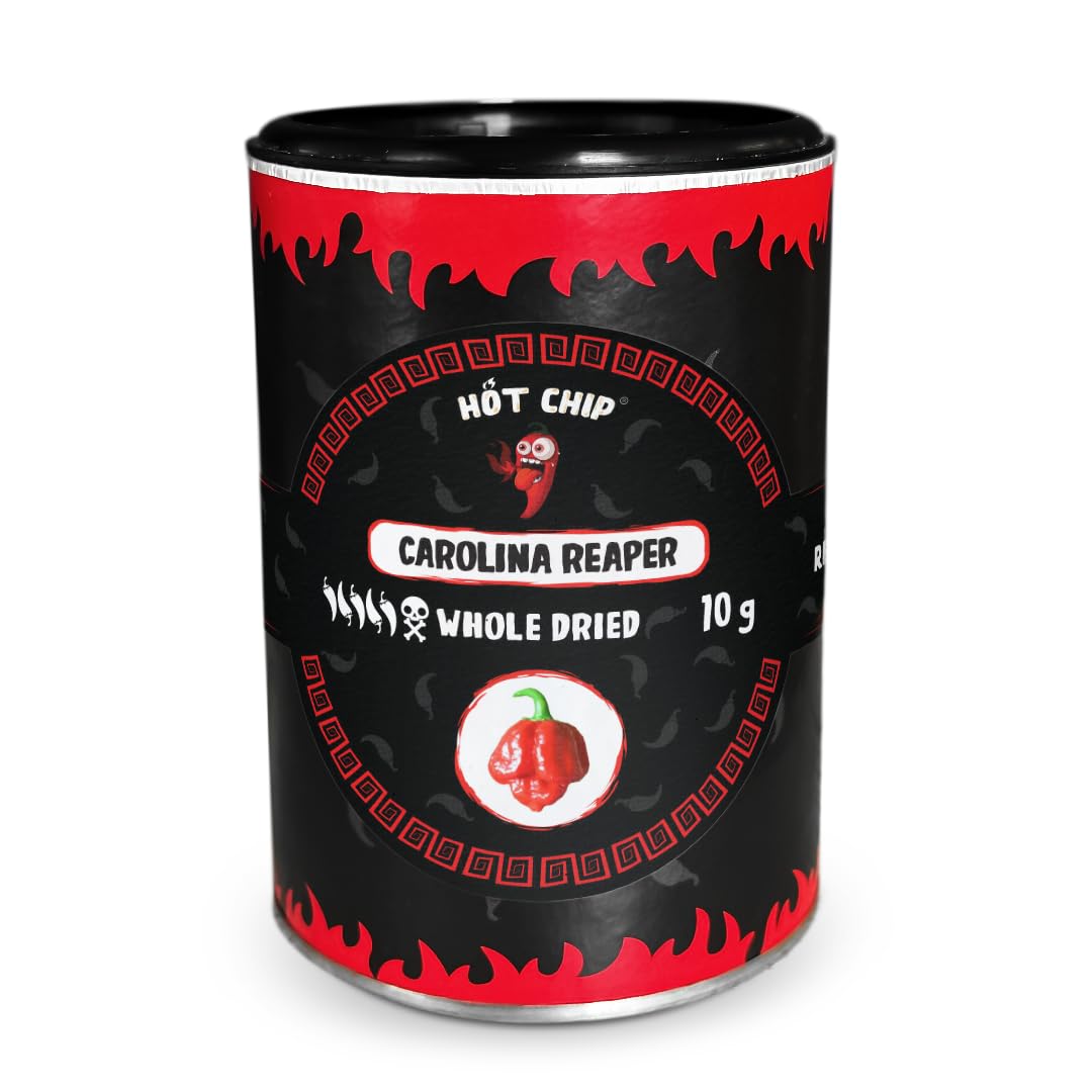 Ladies and gentlemen, make yourselves known. This is the record holder for the world's sharpest chili pepper. Its spiciness reaches a value of up to 2,200,000 SHU. The Carolina Reaper is not a chili pepper for beginners, but only for truly experienced chili lovers. But if you decide to try it, you can look forward to a very rich, fruity, and sweet taste! Except that your mouth will burn. Carolina Reaper Dried Chili Peppers - Appearance 10g - The chili pepper is rather round, 2-5 cm wide and 5-8 cm long. It has a light red color, a wrinkled surface, and is also recognizable by its typical scorpion shape. Fruity and sweet flavor and aroma - Hints of cinnamon, chocolate, and cherry - Spiciness 2,200,000 SHU - Culinary Use - Remember that less is sometimes more, so take care when handling this chili pepper. If you wish to add it to your food, we recommend moderation, otherwise the flames may subside from your plate. Its flavor masks hints of chocolate, cherry, or cinnamon. It is popular in Vietnamese, Latin American, Chinese, Indian, Mexican, and other Asian cuisines. Ideal for sauces, salsas, soups, legumes, and vegetable or meat dishes. Country of origin: Taiwan. The record-breaking Carolina Reaper currently holds the record for sharpness. It is 400 times sharper than the famous Jalapeño pepper and more than twice as sharp as the Jolokia pepper—only a few peppers will lift you out of your chair like the Carolina Reaper. Its extreme sharpness will leave you breathless. When your eyes water and your nose runs your mouth is on fire you swallow and feel like you're going through the door of hell you can be sure you're eating Carolina. It's so solid that you should wear protective gloves to handle it! But the reward is wonderful. INGREDIENTS 100 Carolina Reaper peppers MANUFACTURER'S DETAILS HOT-CHIP s.r.o., 28. ríjna 3346 91, Ostrava, 702 00, 70200, Ostrava, Czech Republic See moreHOT-CHIP CAROLINA REAPER CHILISÉS 10 gDESCRIPTION DU PRODUIT DESCRIPTION DU PRODUIT Mesdames et Messieurs, faites-vous connaître. C'est le support record du piment le plus aiguisé du monde. Son tranchant atteint en effet une valeur allant jusqu'à 2 200 000 SHU. Carolina Reaper n'est pas un piment pour les débutants, mais seulement pour les amateurs de piments vraiment expérimentés. Mais si vous décidez de l'essayer, vous pouvez vous réjouir d'un goût très riche, fruité et sucré ! Sauf que votre bouche brûle. Carolina Reaper Piments séchés - Aspect 10 g - Le piment est plutôt rond, 2-5 cm de large et 5-8 cm de long. Elle a une couleur rouge claire, une surface pliée et est également reconnaissable à son scorpion typique. Saveur et arôme fruités et sucré - Passé de tons de cannelle, de chocolat et de cerise - Tranchant 2 200 000 SHU - Utilisation en cuisine - N'oubliez pas que c'est moins parfois plus, alors prenez soin de traiter ce piment avec précaution. Si vous souhaitez l'ajouter à votre nourriture, nous vous recommandons une modération sinon les flammes peuvent dégonfler de votre assiette. Son goût cache les tons de chocolat, cerises ou cannelle. Il est populaire dans la cuisine vietnamienne, latino-américaine, chinoise, indienne, mexicaine ou orientale. Idéal pour les sauces, les salsas, les soupes, les légumineuses et les plats de légumes ou de viande. Pays d'origine de Taïwan L'affûtage record Carolina Reaper maintient actuellement le record de netteté. Il est 400 fois plus aiguisé que le célèbre piment Jalapeño et plus que deux fois plus tranchant que le piment de Jolokia - Seules quelques piments vous soulèveront de la chaise comme Carolina Reaper. Son tranchant extrême ne vous laissera pas respirer. Lorsque vous pleurez les yeux et que le nez coule votre bouche est en incendie, vous avalez et vous aurez l'impression de passer à travers la porte de l' vous pouvez être sûr que vous mangez Carolina. Il est si solide en soi que vous devriez porter des gants de protection pour les contourner ! Mais la récompense est un merveilleux INGRÉDIENTS 100 piments Carolina Reaper COORDONNÉES DU FABRICANT HOT-CHIP s.r.o., 28. ríjna 3346 91, Ostrava, 702 00, 70200, ostrava, CZ Voir plus
