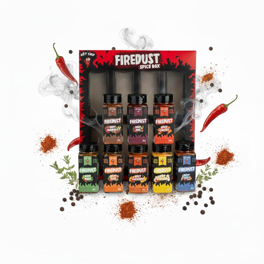HOT CHIP HOT CHIP Firedust Firedust Spice Gift Box 8 x 73g Spice Mix - Pizza BBQ Fish Potatoes Spices & More - Spicy Cheese Spices with Paprika and Celery - Perfect for