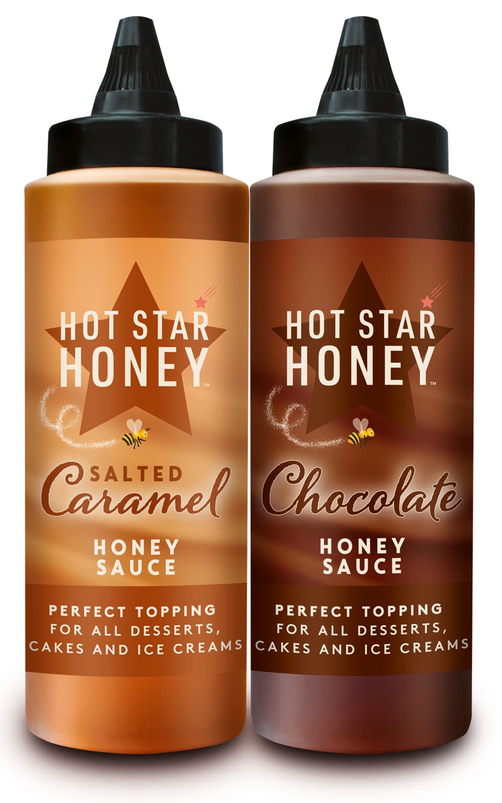 Hot Star Honey Chocolate & Caramel Sauce | Hand Crafted Sweet Honey Sauces | Perfect Topping for All Desserts Cakes and Ice Creams . Twin Pack 610 g Bottles