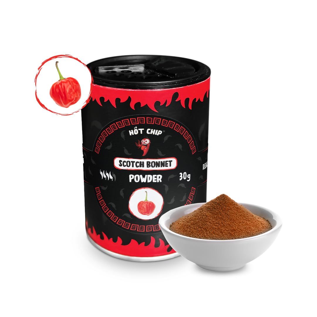The pungency and appearance of Scotch Bonnet resembles the Habanero chili. In contrast, it surprises with its fruity aroma and taste with shades of apples, cherries and apricots. If you like spiciness, but are also looking for excellent taste, then this spice should be put in your shopping cart immediately. Scotch Bonnet Chili Powder 30 g aroma and taste, fruity aroma, fine fruity taste with pleasant pungency, pungency 350,000 SHU Use in the kitchen. This spice fits perfectly in all sauces and dips. It also goes great with chicken or pork. Country of origin Costa Rica Ideal sharpness and unmistakable taste. This spice comes from a chili, which is very similar to the Habanero. In addition to appearance, they are also linked by similar sharpness and taste. Scotch Bonnet is cuter, though. If you like that the sharpness has an added value, you should not go anywhere else. Scotch Bonnet guarantees a tart experience, but also surprises with its rich fruit flavor, which mixes shades of apples, cherries, apricots and tomatoes. The sweet taste of this chili makes it a very versatile spice that lovers of sweet and salty dishes will appreciate. It goes well in sweet-sharp marinades or sauces. You will see if you try it how your imagination will restart. If you are new to this water, you can start with a 10g pack. But you will see that you don't end thereHot Chip Scotch Bonnet poeder 30 g De scherpte en het uiterlijk van Scotch Bonnet lijkt op de Habanero-chili. In tegenstelling daartot verrast hij met zijn fruitige aroma en smaak met tinten van appels, kersen en abrikozen. Als je van scherpte houdt, maar ook uitstekende smaak zoekt, dan moet deze specerij direct in je winkelwagen worden gelegd. Scotch Bonnet Chilipoeder 30 g aroma en smaak, fruitig aroma, fijnfruitige smaak met aangename scherpte, scherpte 350.000 SHU Gebruik in de keuken. Deze specerij past perfect in alle sauzen en dips. Het past ook uitstekend bij kip of varkensvlees. Land van oorsprong Costa Rica Ideale scherpte en onmiskenbare smaak. Deze specerij komt van een chili, die zeer vergelijkbaar is met de Habanero. Naast het uiterlijk worden ze ook door vergelijkbare scherpte en smaak verbonden. Scotch Bonnet is echter schattiger. Als je het leuk vindt dat de scherpte een toegevoegde waarde heeft, moet je nergens verder gaan. Scotch Bonnet garandeert een scherpe ervaring, maar verrast ook met zijn rijke fruitsmaak, die tinten van appels, kersen, abrikoozen en tomaten mengt. De zoete smaak van deze chili maakt hem tot een zeer veelzijdige specerij die liefhebbers van zoete en zoute gerechten weten te waarderen. Hij past goed in zoet-scherpe marinades of sauzen. Je zult zien als je het probeert hoe je fantasie doorstart. Als je dit water voor het eerst betreedt, kun je beginnen met een verpakking van 10 g. Maar je zult zien dat je daarbij niet eindigt