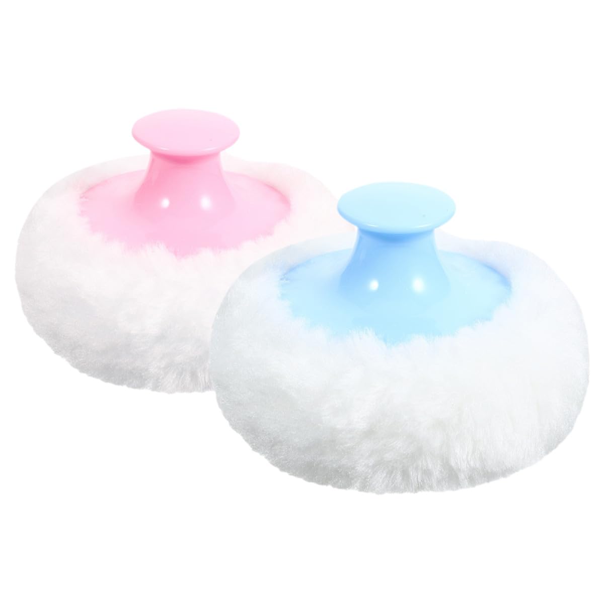 Houppettes à Poudre Bébé Douces et Rondes 8 Cm, Applicateurs Pelucheux Réutilisables, Lot 2 Pièces Bleu Clair et Rose Pâle, Soin Corps Bébé, Usage Quotidien et Voyage