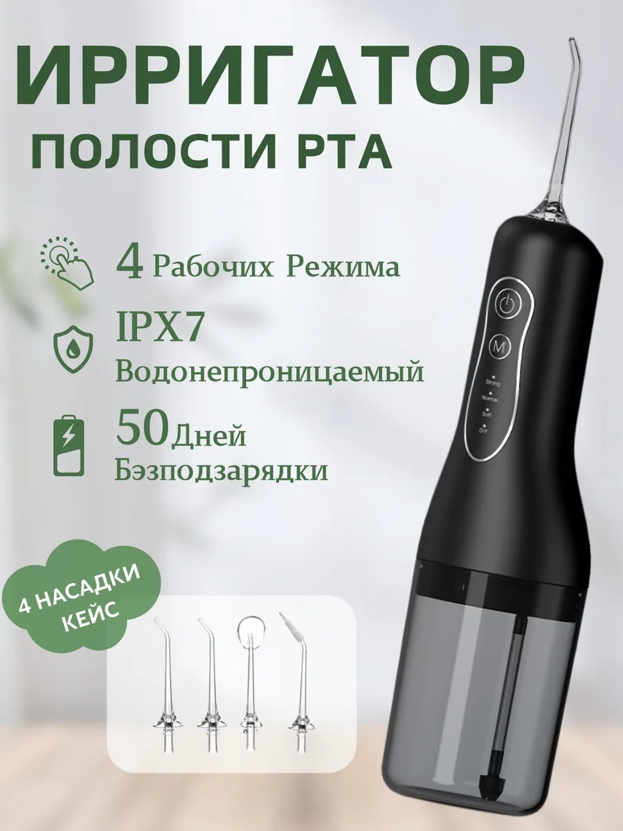 | Принцип работы ирригатора | импульсный; массаж десен; очистка языка и гигиена полости рта |