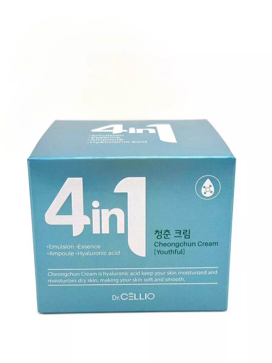 Dr.Cellio G50 4 In 1 Cheongchun Hyaluronic Acid Cream. Facial cream with hyaluronic acid. The product controls hydration at the cellular level, forms a special barrier film that protects the skin from moisture loss and external irritants, improves firmness and elasticity, and evens out skin tone. Eliminates flaking and tightness, makes the skin soft and soft thanks to deep hydration. Hyaluronic acid regulates the water content in the intercellular space. Creates a protective barrier on the skin's surface, thereby preventing dehydration and maintaining its normal functioning. Hyaluronic acid enhances cell metabolism, improves tissue respiration, accelerates the synthesis of collagen and elastin, due to which the skin remains elastic and taut. Promotes the healing of various skin lesions. How to use: At the last stage of basic skin care, apply the cream with light massage movements. Volume: 70 ml.