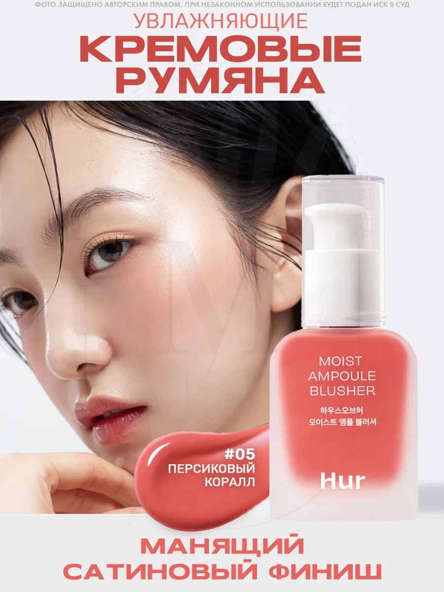 Жидкие румяна House of Hur Moist Ampoule Blusher одним касанием деликатно ложатся на поверхность кожи, придавая ей свежий румянец и длительное сияние, обеспечивая максимальный комфорт и увлажнение. Кремовые румяна с невесомой текстурой эссенции легко растушевываются и выглядят естественно. Подходят для смешивания с другими текстурами. Обладают повышенной стойкостью. Шиммер не оставляет липкости, не утяжеляет, а только подчеркивает естественную красоту. Для монохромного образа нанесите на скулы, веки и немного на губы.