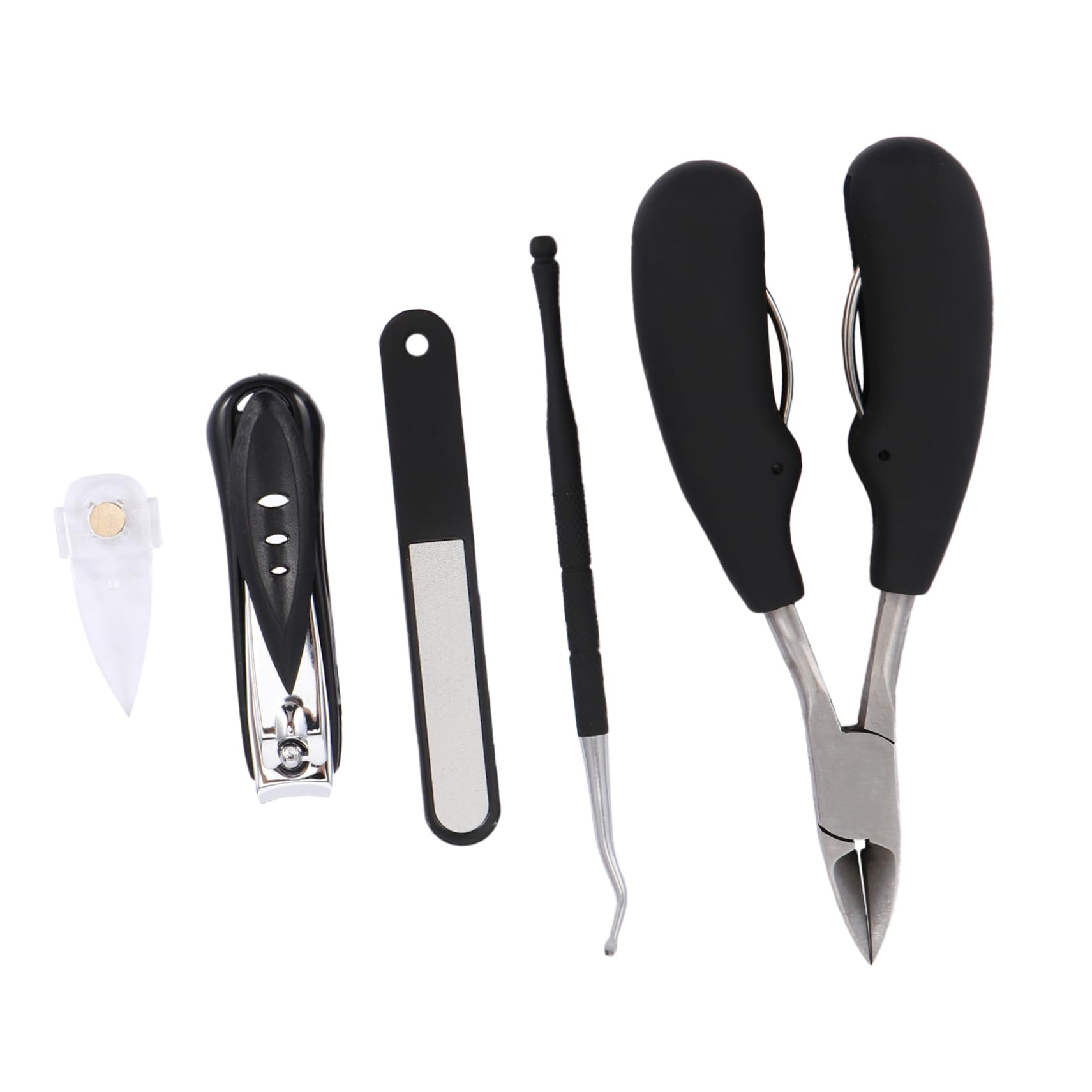 Package List 1 Set/5pcs x Pedicure Tools Characteristics - Size: About 13x7.8x2.5cm/ 5.11x3.07x0.98 inch nail clippers set. - Color: Black nail trimmer. - Material: Stainless steel manicure tool. - Made by material, durable and provide nail . - Different nail art tool have different functions, they will meet your essential needs pedicure tool. - for professional and home use fingernail clipper. - A great to friends, family, co-worker, etc toenail . - Lightweight and long handle, convenient for you to use nail pliers. Goods Description lipgloss for fine nail art work.men suit for professional and home use.nail tool Wonderful for choice for friends who love nail art.toenail clippers Made of premium stainless steel material for long lasting use.fingernail clippers This product is a set of 5pcs professional manicure kit, it will meet your essential needs