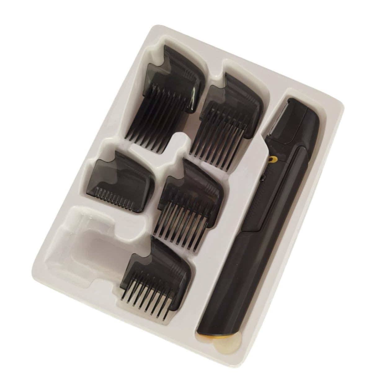 Package List 1 x trimmer 1 x USB 5 x comb Characteristics - Size: About 20.00X3.50X2.50cm 7.86X1.38X0.98inch Clippers. - Color: Black Electric Barber Clippers. - Material: ABS, stainless steel Razor. - Ergonomic slim body design makes it very easy to handle, for travel or business trip Multi-purpose Trimmer. - This clipper for men provides superior cutting for all types and length Household Clipper. - The razor can adjust your haircut length in 5 Electric Haircut Kit. - The are long lasting for quiet performance for outstanding performance in a and beard trimmer Hairdressing . - For touch ups between clipping and detail shaving, mustaches, sideburns, goatees, stubble, nose, ear, other face and body ! Trimmer Goods Information stainless steel D escription clipper set for men provide a smoothly precise trim, so you can get the style you want.groomed Choose from a variety of guide comb lengths and widths for any styles.Men's trimmer Precision ground easily cut through even the thickest , eliminating pulling and snagging.Household Clipper Gives you the precision you need to get the style you want.hairclippers The of the clipper are engineered for long lasting sharpnessHairclippers: the razor can adjust your haircut length in 5 combs. Compact hair trimmer: powerful motor, easy for shaving carving. Men's hair trimmer: this hair clipper for men provides superior cutting for all hair types and length. Groomed: portable and compact, easy to hold. suitable for novice use. Stainless steel : for touch ups between hair clipping and detail shaving, mustaches, sideburns, goatees, stubble, nose, ear, other face and body hair!.
