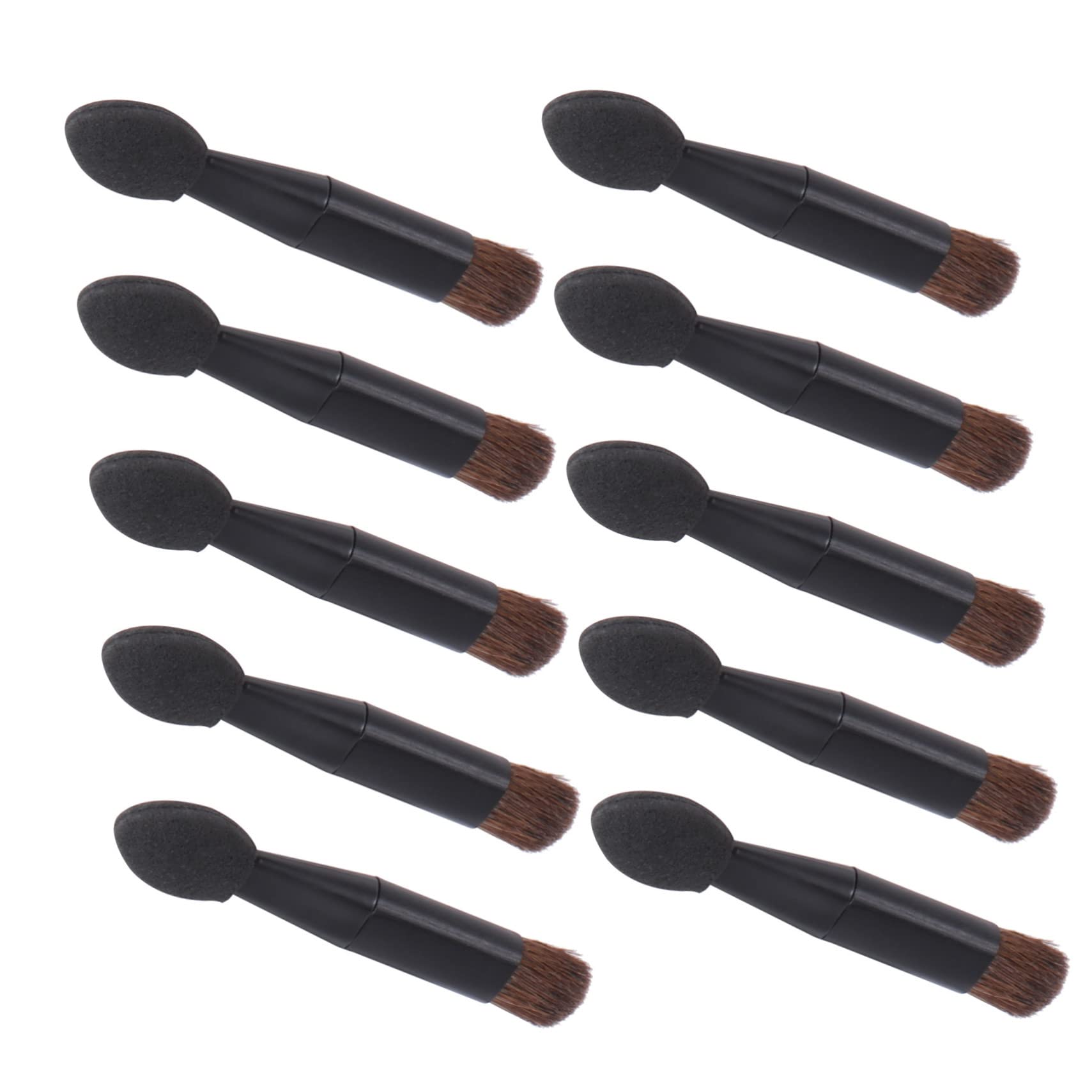 Package List 10 x Eyeshadow Brushes Characteristics -Material: Plastic, Horsehair beauty sponges -Color: Black makeup applicators -Size: 4.60X0.80X0.70cm 1.81X0.31X0 Professional Makeup Brush. -Professional eye shadow brush kit, you can't go wrong with this present for your mom, sister, daughter, wife, girlfriend Women Makeup Brush. -The stick is a grip, a mini size and a strong adhesion Eye Shadow Brush for Makeup. -Their surface is smooth, they don't damage your hand or skin makeup sponge. -Great makeup applicators for eye makeup and face painting clear makeup bags. -An for those who love makeup or even just learning and experimenting with makeup disposable eyeshadow brush. Goods Description Cosmetics Kit The handle is firm enough to apply your eyeshadow well, and give the most beautiful eye shadow you want.Eyeshadow Brush Creative dual heads design, allow more flexibility for your use.makeup applicators Comes with 10 pieces eyeshadow applicators, enough to use for different purposeEye shadow brush for makeup-- - eyeshadow paste does not damage the eye skin, easy to make up, do not lose powder. Oval makeup brushes-- it does not hurt the eyelids and has strong adhesion, bring a makeup for you. Eye shadow brushes-- a compact eyeshadow brush with a sponge that adheres tightly to the little wand at the end. Cosmetics kit-- lightweight and portable, easy to carry or store in eye shadow cases, make- up bags, vanity cases etc. Sponge eyeshadow applicator-- an for those who love makeup or even just learning and experimenting with makeup.
