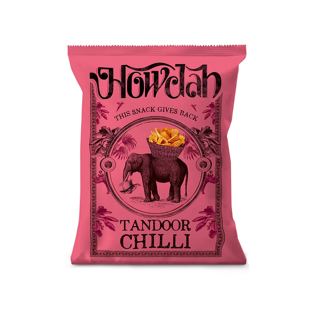 Howdah Howdah Tandoor Chilli Ancient Grain Snack Bag 130g | Crispy Chips with Dried Exotic Spices | Spicy Indian Snack to Share