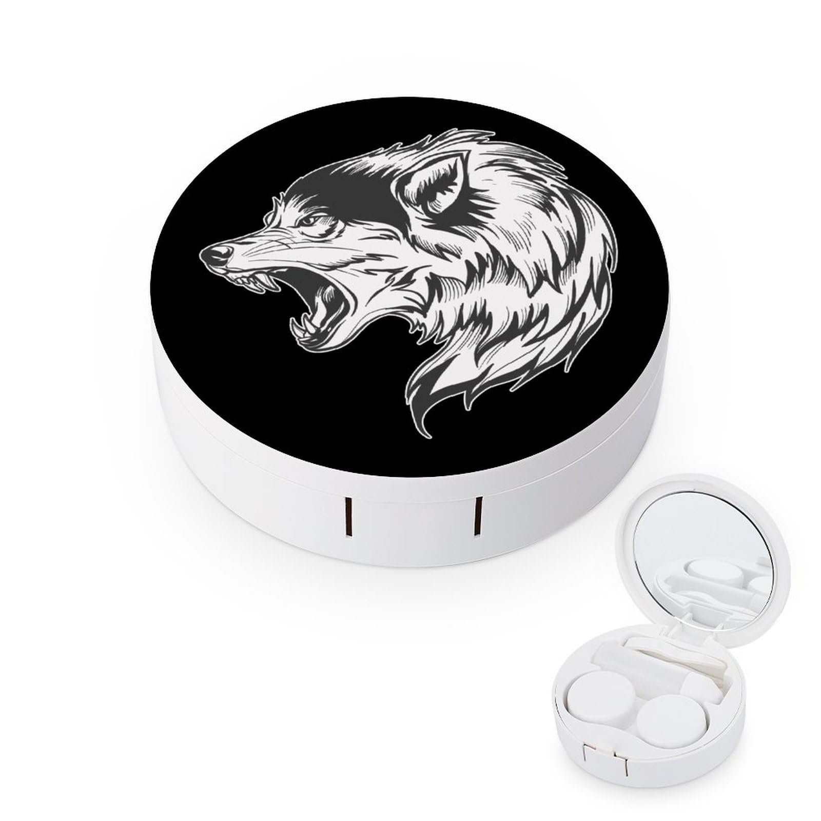Howing Wolf Contact Lens Case Travel Portable Travel Contact Lens Box with Mirror