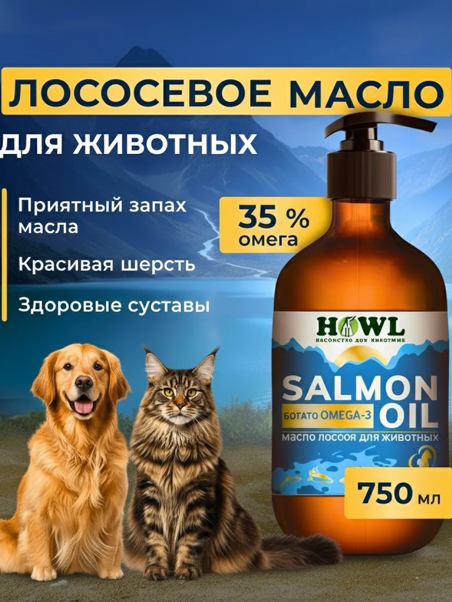 Salmon oil is a natural food supplement made from salmon raised in clean mountain rivers. Like wild salmon, it's especially rich in omega-3 fatty acids and collagen for dogs and cats, which strengthen joints, promote immunity, and maintain a shiny coat. Veterinarians recommend including veterinary cod liver oil or fish oil in the diet, especially for medium- and large-breed cats. It's also beneficial for small rodents like rats, hamsters, and guinea pigs, as well as large animals like horses. Oil for pregnant and nursing pets maintains health for many months and even years. These vitamins are ideal for both young animals like puppies and kittens, as well as older cats. Even if your pet is a raccoon or rabbit, trout oil is a beneficial supplement. It's an excellent choice for neutered and spayed cats. Salmon oil can be used to prevent hair loss and prevent shedding. An excellent solution for birds, including parrots, chickens, hens, and even show horses. It can even serve as a veterinary supply for exotic pets like chinchillas and ferrets.