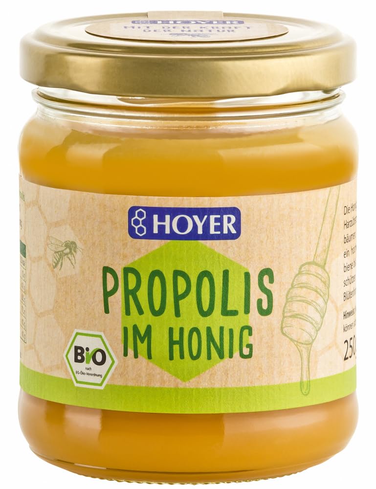 Flavour: Storage and use instructions: Store at room temperature Processing: Blossom honey with propolis extract Honey bees discovered the resin layers of young buds of deciduous and coniferous trees as raw material for propolis. Mixed with the body's own secretions, a high-quality natural substance is created with which our honey bees have been able to protect themselves until today. Propolis gives this high-quality blossom honey its typical flavour. Certification and German State Organic Seal EU Organic Seal INGREDIENTS blossom honey , propolis extract 0.8 . SAFETY WARNING Allergy information: NO (without analysis): gluten-containing grains, wheat, cohorasaan wheat, spelt, rye, barley, oats, other gluten-containing grains, shellfish, eggs, fish, peanuts, soy, milk, lactose, nuts, almonds, hazelnuts, walnuts, cashews, pecans, Brazil nuts, pistachios, macao. Damai nuts, celery, mustard, sesame, sulfites, lupine, mollusks. Legal information Like other raw foods, honey is not suitable for infants under 12 months. See moreFlowering honey with propolis extract. The honey bees discovered the resin layer of young buds of deciduous and coniferous trees as a raw material for propolis. Organic certification: 99 EU blend. Packaging quantity: 500 grams.Propolis in honing 2 x 250 gr Smaak: Bewaren en gebruiksinstructies: Bewaren bij kamertemperatuur Verwerking: bloesemhoning met propolis-extract De honingbijen ontdekten de harslagen van jonge knoppen van loof- en naaldbomen als grondstof voor propolis. Gemengd met lichaamseigen afscheiding, ontstaat een hoogwaardige natuurlijke stof waarmee onze honingbij zich tot de huidige tijd kon beschermen. Propolis geeft deze hoogwaardige bloemenhoning zijn typische smaak. Certificering en Duitse staatsbiologische zegel EU biologisch zegel INGREDIËNTEN bloemenhoning , propolisextract 0,8 . VEILIGHEIDSWAARSCHUWING Allergie-info: NEE (zonder analyse): glutenhoudende granen, tarwe, cohorasaantarwe, spelt, rogge, gerst, haver, andere granen met gluten, schaaldieren, eieren, vis, pinda, soja, melk, lactose, noten, amandelen, hazelnoten, walnoten, cashewnoten, pecannoten, paranoten, paranoten, pistache, macao. damianoten, selderij, mosterd, sesam, sulfiet, lupine, weekdieren. Juridische aanwijzingen Net als andere rauw voedsel is honing niet geschikt voor zuigelingen jonger dan 12 maanden Meer bekijkenBloeihoning met propolis-extract. De honingbijen ontdekten als grondstof voor propolis de harslaag van jonge knoppen van loof- en naaldbomen. Biologische certificering: 99 EU-mengsel. Verpakkingshoeveelheid: 500 gram.