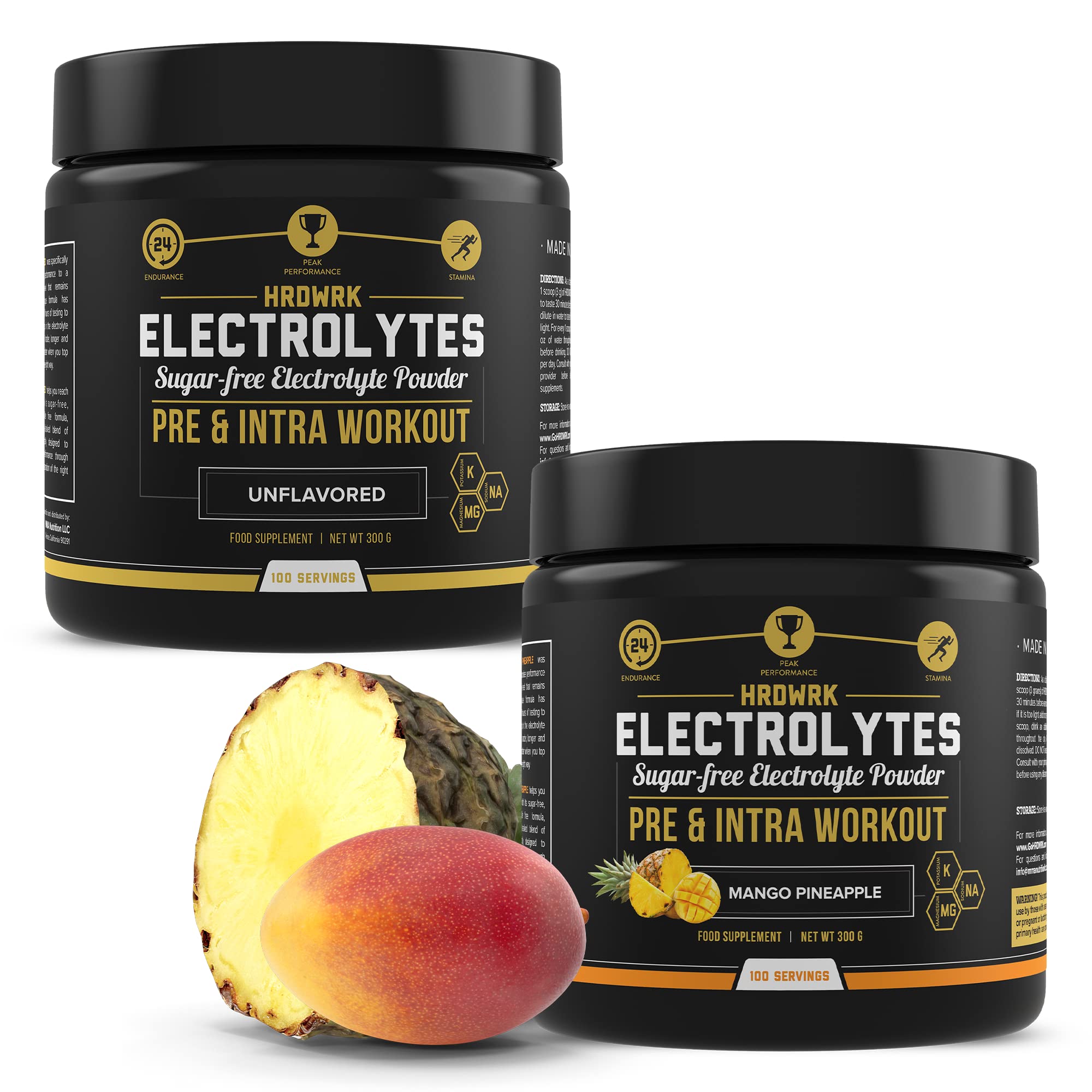 HRDWRK - 100 Servings Keto Electrolytes Powder Hydration Sugar Free - Electrolyte Powder to Boost Endurance & Reduce Fatigue with Electrolytes Supplement - Unflavored & Mango Pineapple Set