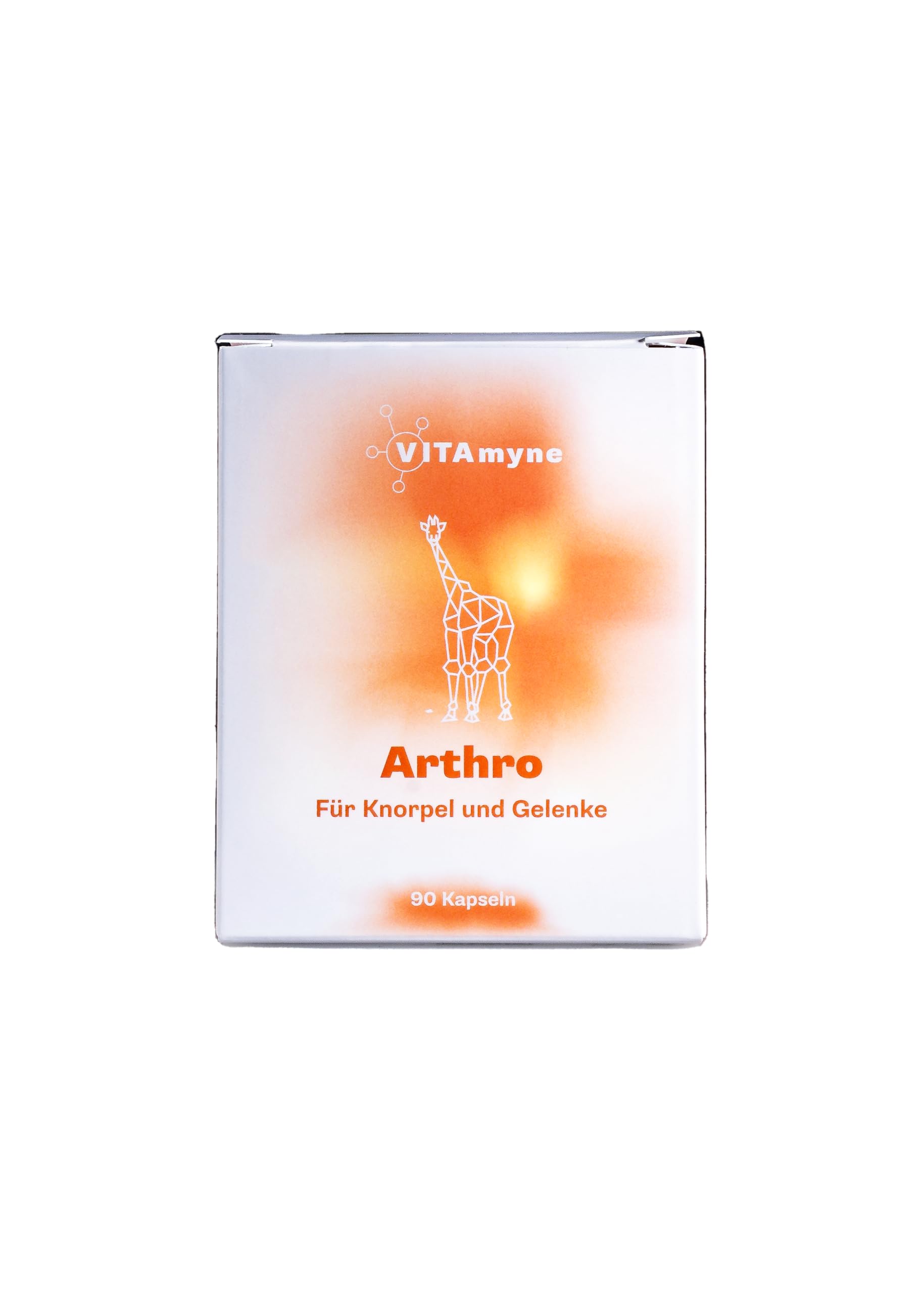 INGREDIENTS Hydrolyzed chicken starch collagen, hydrolyzed bovine collagen, hyaluronic acid, L-ascorbic acid, bitter orange fruit extract, frankincense resin extract, turmeric root extract, black pepper fruit extract, DL-alpha-tocopheryl acetate, manganese gluconate, copper gluconate, separating agent: maltodextrin, microcrystalline cellulose, hydrolyzed xypropylmethyl cellulose, ethylcellulose, capsule shell: bovine gelatinExperience vitality and well-being: VITAmyne Arthro naturally promotes your joint health for an active and pain-free life. Easy to use: take 3 capsules per day to achieve the optimal effect for your joints. A monthly pack with 90 capsules. Premium quality: made in Austria, lactose-free and free from artificial additives. Trust premium ingredients for your health. Specially developed: with high-quality collagen, hyaluronic acid, essential vitamins for natural support of your joint function. Optimize your joints: VITAmyne ARTHRO supports healthy cartilage, joints and muscles for improved mobility and quality of life.Arthro - voor kraakbeen en gewrichten 90 capsules INGREDIËNTEN Gehydrolyseerd kippenzetmeelcollageen gehydrolyseerd rundercollageen, hyaluronzuur, L-ascorbinezuur, bittere sinaasappelvruchtextract, wierookharsextract, kurkuma-wortelextract, zwart pepervruchtextract, DL-alfa-tocoferylacetaat, mangaanluconaat, kopergluconaat, afscheidingsmiddel: maltodextrine, microkristallijne cellulose, hydrolyse. xypropylmethyl. cellulose, ethylcellulose, capsulehuls: rundergelatineErvaar vitaliteit en welzijn: VITAmyne Arthro bevordert je gewrichtsgezondheid op natuurlijke wijze voor een actief en pijnloos leven. Eenvoudig in gebruik: neem 3 capsules per dag in om het optimale effect voor je gewrichten te bereiken. Een maandverpakking met 90 capsules. Premium kwaliteit: gemaakt in Oostenrijk, lactosevrij en vrij van kunstmatige additieven. Vertrouw op eersteklas ingrediënten voor je gezondheid. Speciaal ontwikkeld: met hoogwaardig collageen, hyaluronzuur, essentiële vitaminen voor een natuurlijke ondersteuning van je gewrichtsfunctie. Optimaliseer je gewrichten: VITAmyne ARTHRO ondersteunt gezond kraakbeen, gewrichten en spieren voor verbeterde mobiliteit en levenskwaliteit.
