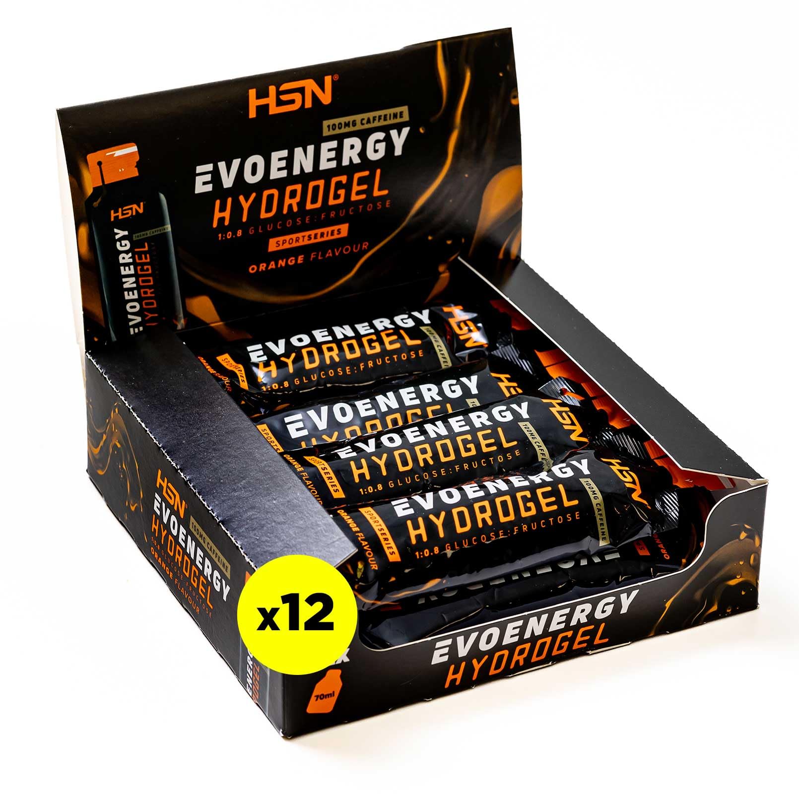 HSN Evonergy Hydrogel with caffeine orange 12 pieces of 70 ml 30 g carbohydrates per gel ratio 108 glucose fructose high absorption capacity no GMO vegan gluten and