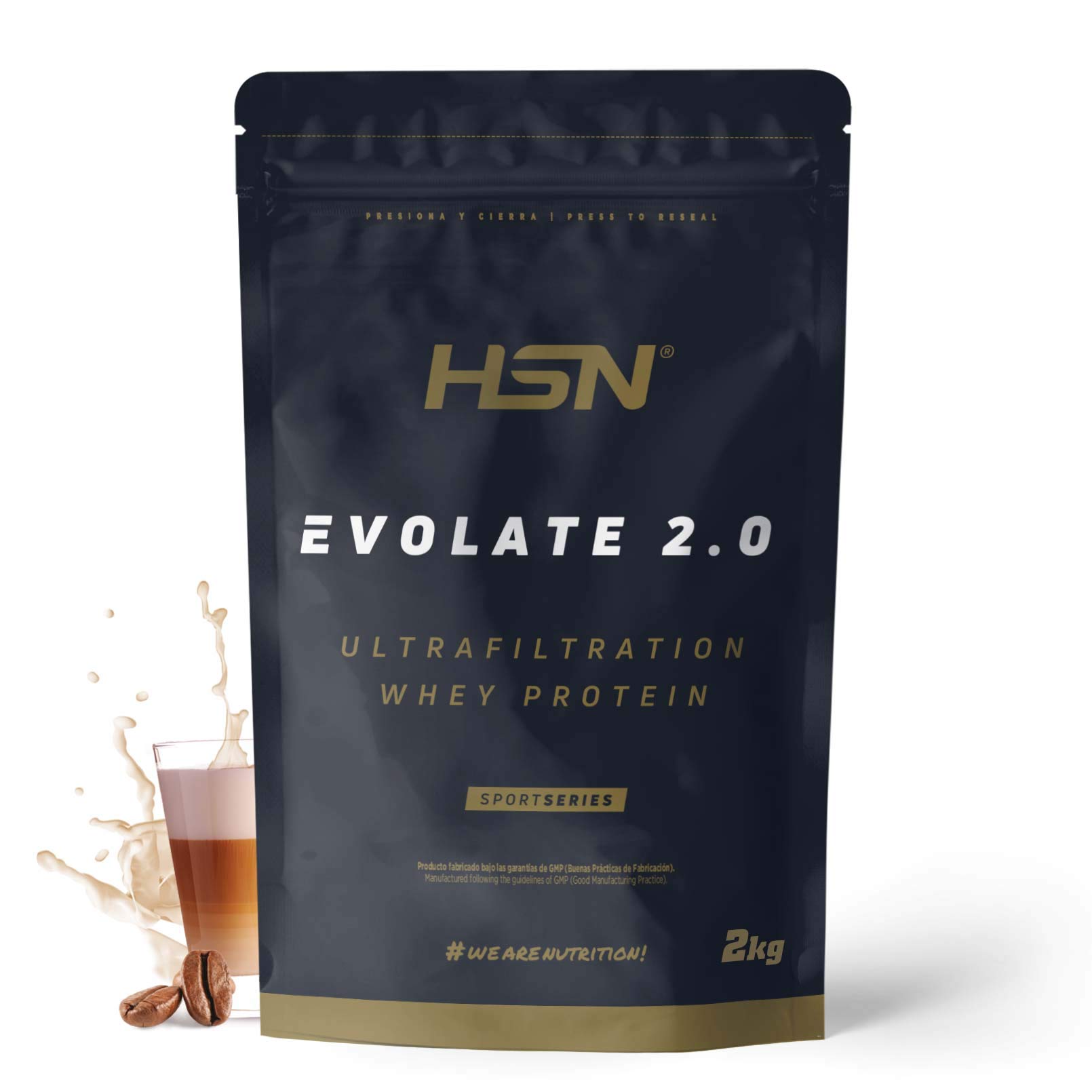 HSN Evolate 2.0 Isolat de protéines de lactosérum saveur café au lait 2 kg 67 prises par paquet Whey Protein Isolate CFM enzymes digestives Non-OGM, végétalien, sans gluten ni soja