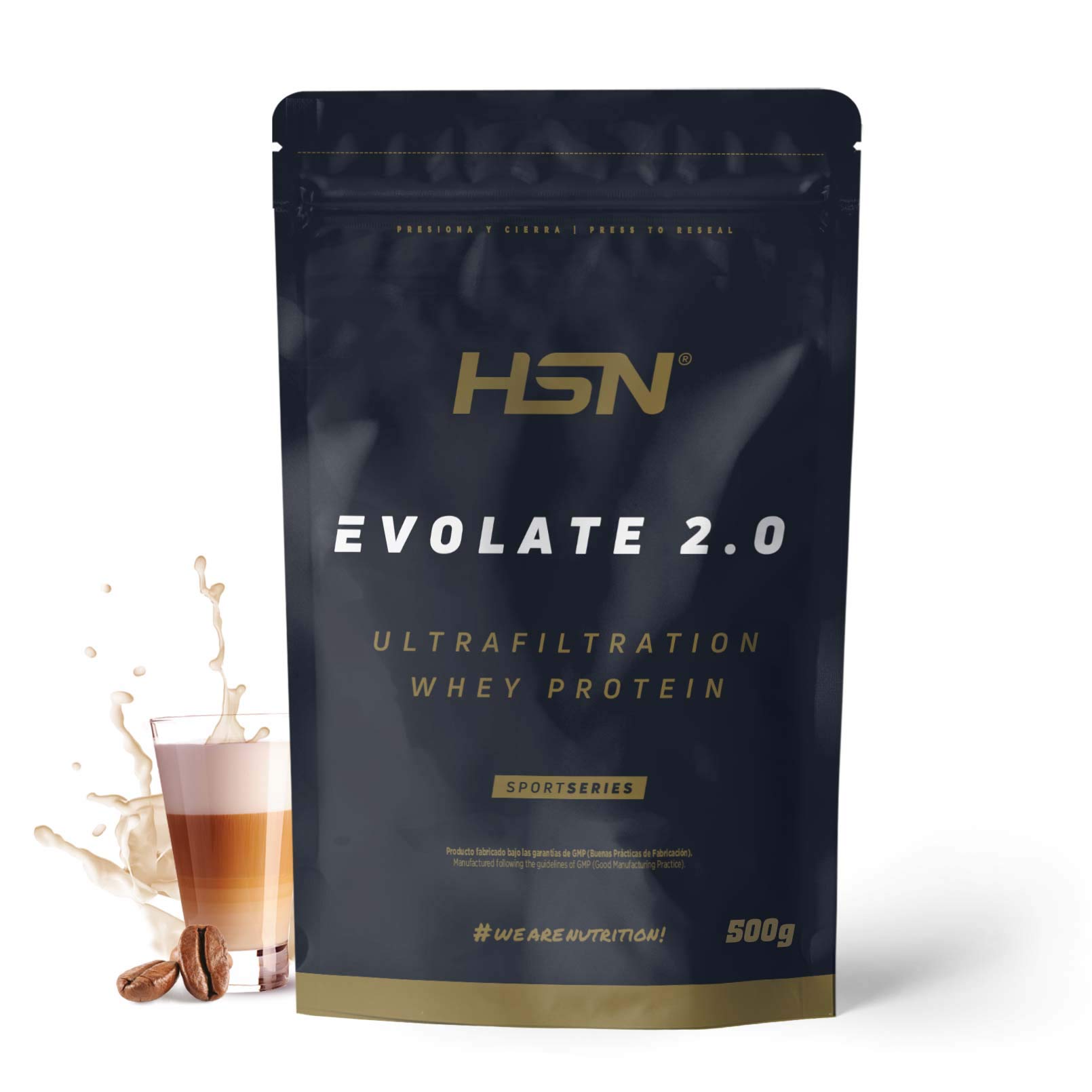 HSN Evolate 2.0 Isolat de protéines de lactosérum saveur café au lait 500 g 16 prises par paquet Whey Protein Isolate CFM enzymes digestives Non-OGM, végétalien, sans gluten ni soja