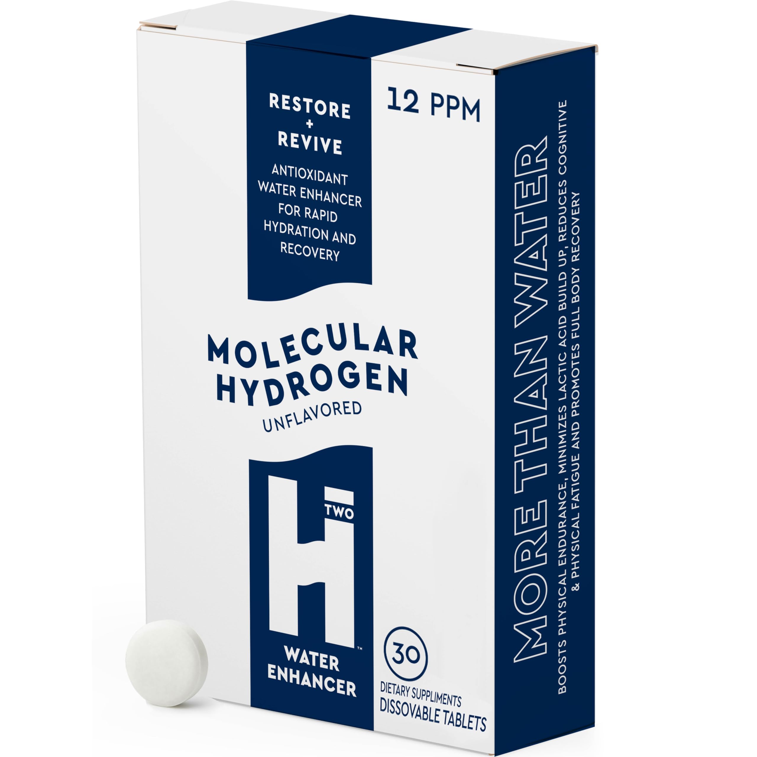 HTWO Molecular Hydrogen Water Tablets for Drinking 30 Count Water Enhancer with 80mg Magnesium for Hydration Antioxidant Support for Recovery & Cognitive Function Unflavored 12 ppm