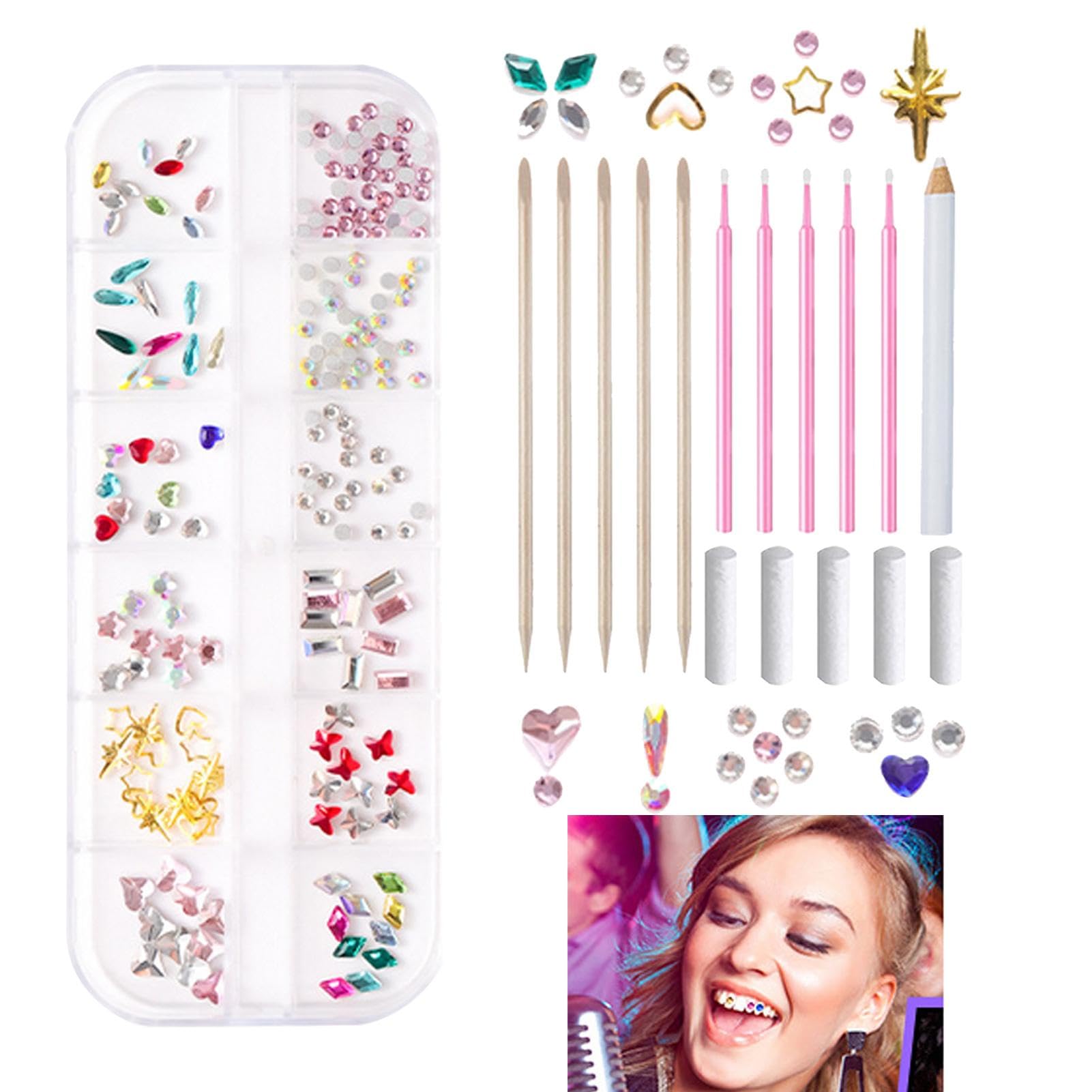 Beautize your smile with our tooth jewelry edelstein set!Forget expensive beauty salons - our set meets all of your stylish needs.With 5 rollers cleaning cotton, enjoy sparkling pieces of jewelry that stay in place longer.Just keep it and whenever you use it, your smile will be more radiant. Specification: Product name: Teeth Gem Kit Cardboard size: approx. 13 x 5 x 1.2 cm Use: is used for tooth decoration and can be manufactured yourself Packing list: 5 x wooden sticks 5 x cleaning cotton wool 5 x Applicator brushes 1 x puncture pen 1 box of rhinestones ¦ user friendliness: achieve a radiant smile with our DIY tooth jewelry set effortlessly.It is very simple: Apply glue, lend shine and in a few minutes you will feel safer with more radiant teeth.¦ Appreciated application: Our DIY-Zahnstein set is made of high-quality crystal and offers a brilliant, long-lasting shine that does not affect your everyday life.Thanks to its robust and reliable design, it can be kept for a long time without breaking or using it, and does not fall so easily so that it ensures a bright smile with every occasion.¦ Running smile: Our DIY tooth jewelry set-an ideal set for a bright smile.Contains 5 chopsticks, a box with gemstones and cleaning cotton, without glue.With 5 applicator brushes, it covers your daily use and replacement needs and is therefore the perfect homeowner requirement set for enthusiasts.¦ Completion of style upgrade: Our tooth jewelry set is available in different styles in order to meet all of your fashion needs.Use this chic set to upgrade your look, which is fulfilled by all your style requests and is practically packed in a box.¦ Running smile: Enjoy the fun of coloring and decorate your teeth at home with our practical dental edelstein set;No visit to the hairdresser required, create your gemstone style. Verschönern Sie Ihr Lächeln mit unserem Zahnschmuck-Edelstein-Set! Vergessen Sie teure Schönheitssalons – unser Set erfüllt alle Ihre stilvollen Bedürfnisse. Mit 5 Rollen Reinigungswatte genießen Sie funkelnde Schmuckstücke, die länger an ihrem Platz bleiben. Bewahren Sie es einfach auf, und wann immer Sie es verwenden, wird Ihr Lächeln strahlender. Spezifikation: Produktname: Teeth Gem Kit Kartongröße: ca. 13 x 5 x 1,2 cm Verwendung: Wird zur Zahndekoration verwendet und kann selbst hergestellt werden Packliste: 5 x Holzstäbchen 5 x Reinigungswatte 5 x Applikatorpinsel 1 x Punktierstift 1 Schachtel Strasssteine¦Benutzerfreundlichkeit: Erzielen Sie mühelos ein strahlendes Lächeln mit unserem DIY-Zahnschmuckset. Es ist ganz einfach: Kleber auftragen, Glanz verleihen und in wenigen Minuten fühlen Sie sich mit strahlenderen Zähnen sicherer. ¦Zuverlässige Anwendung: Unser DIY-Zahnstein-Set besteht aus hochwertigem Kristall und bietet einen brillanten, langanhaltenden Glanz, der Ihren Alltag nicht beeinträchtigt. Dank seines robusten und zuverlässigen Designs kann es lange aufbewahrt werden, ohne zu brechen oder abzunutzen, und fällt nicht so leicht ab, sodass es bei jedem Anlass für ein strahlendes Lächeln sorgt. ¦Funkelndes Lächeln: Unser DIY-Zahnschmuck-Set – ein ideales Set für ein strahlendes Lächeln. Enthält 5 Stäbchen, eine Schachtel mit Edelsteinen und Reinigungswatte, ohne Kleber. Mit 5 Applikatorpinseln deckt es Ihren täglichen Gebrauchs- und Ersatzbedarf ab und ist damit das perfekte Heimwerkerbedarfsset für Enthusiasten. ¦Vielseitiges Stil-Upgrade: Unser Zahnschmuck-Set ist in verschiedenen Stilen erhältlich, um allen Ihren Modebedürfnissen gerecht zu werden. Werten Sie Ihren Look mit diesem schicken Set auf, das alle Ihre Stilwünsche erfüllt und praktisch in einer Box verpackt ist. ¦Funkelndes Lächeln: Genießen Sie den Spaß am Färben und dekorieren Sie Ihre Zähne zu Hause mit unserem praktischen Zahn-Edelstein-Set; Kein Friseurbesuch erforderlich, kreieren Sie Ihren Edelstein-Stil.Huaxingda Edelstein-Zahn-Set,Zähne-Edelstein-Set | Zahnschmuck Ornament - DIY-Zahn-Edelstein-Set, abnehmbare Steinkristall-Zahnornamente für Damen und Herren