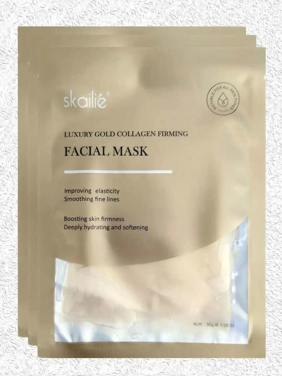 Skailie Luxury Gold Firming Collagen Face Mask with an effective anti-aging formula.
