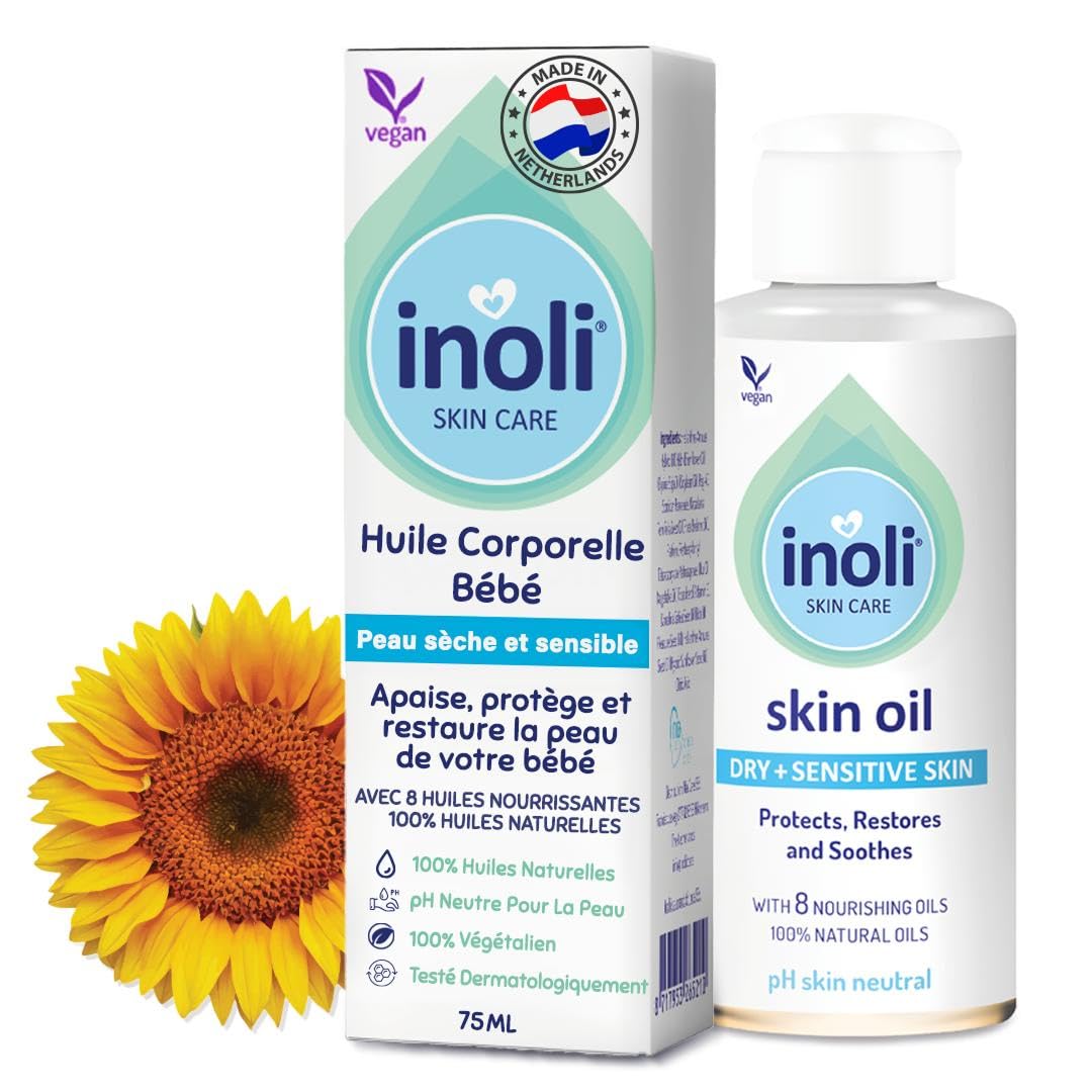 : Treat your baby to a relaxing and nourishing massage with Inoli Baby Oil, specially formulated to hydrate and protect dry and sensitive skin. Its rich composition of 8 natural oils, including seed oil, sunflower oil, macadamia oil, soybean oil, and vitamin E, helps preserve skin hydration, strengthens the skin barrier, and maintains its suppleness. Thanks to its skin-neutral pH formula, this baby massage oil is perfect for daily use. It is ideal for moisturizing the most exposed areas, such as the tummy and back, while offering a special bonding moment between parent and child. Directions for use: Warm a few drops of Inoli Baby Oil between your hands. Massage in circular motions, from the feet to the tummy. Apply light pressure with your thumb to the arch of the foot, from the base to the toes. Repeat this motion on the arms and hands. Place your hands on the chest and gently smooth outwards. Thanks to its light, non-greasy texture, this baby oil absorbs quickly, leaving skin soft, moisturized, and soothed after each massage. Inoli Skincare guarantees gentle, natural care, specially designed to meet the needs of babies' sensitive skin. Our formulas combine quality, safety, and effectiveness without compromise. Treat your baby to a comforting massage and nourished skin with Inoli Baby Oil. Ingredients: Natural Ingredients. Safety Warning: For external use only. See more