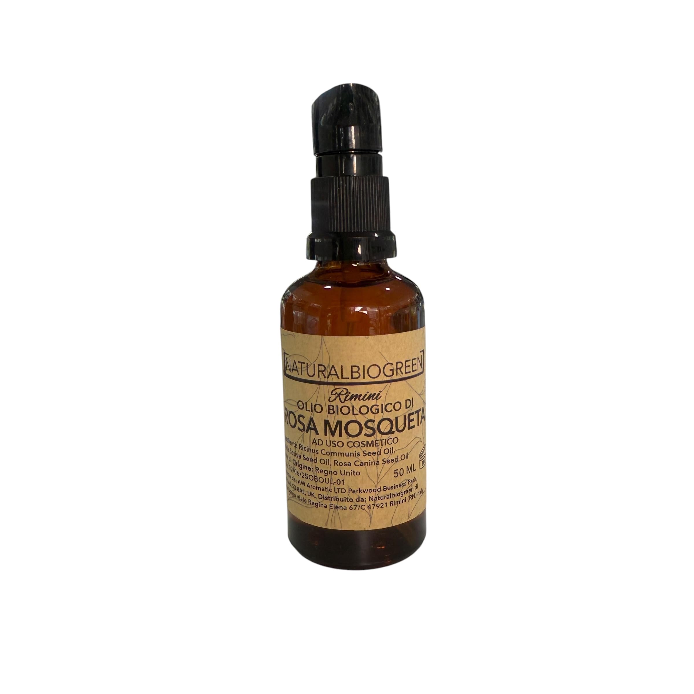 : Naturalbiogreen Organic Rosehip Body Oil, Unscented, 50ml. An exclusive blend of three base oils: castor, black cumin, and rosehip. Each oil has been chosen for its exceptional properties, creating a formula that revitalizes, hydrates, and regenerates the skin without added fragrance. Key Benefits: Organic Castor Oil Base: Deeply moisturizes, leaving skin soft. Promotes hair growth and strength. Organic Black Cumin Oil Base: Reduces acne and irritation, strengthens hair, and reduces hair loss. Combats skin aging with its antioxidant properties. Organic Rosehip Oil Base: Improves skin texture, minimizing scars and fine lines. Rich in vitamins A and C, it stimulates collagen production and fights aging. Intensely hydrates and increases elasticity, perfect for dry and mature skin. Safety Warning: This oil is supplied for aromatic or manufacturing uses only and is not certified for domestic or food use.In a glass bottle with a dispenser. Unscented.Description du produit Naturalbiogreen Huile corporelle bio de rose mosquée sans parfum 50 ml Un mélange exclusif de trois huiles base : ricin, cumin noir et rose mouquée. Chaque huile a été choisie pour ses propriétés exceptionnelles, créant une formule qui revitalise, hydrate et régénère la peau sans ajout de parfum. Avantages clés : huile de base de ricin biologique : hydrate en profondeur, donnant douceur à la peau. Favorise la croissance et la résistance des cheveux. Huile de base de Cumino Noir Bio : réduit l'acné et les irritations renforce la santé des cheveux, réduisant la chute. Combat le vieillissement cutané avec ses propriétés antioxydantes. Huile de base de rose muscade biologique : améliore la texture de la peau, minimisant les cicatrices et les lignes fines. Riche en vitamines A et C, stimule la production de collagène et combat le vieillissement. Hydrate intensément et augmente l'élasticité, parfait pour les peaux sèches et matures. Avertissement De Sûreté Cette huile est fournie uniquement pour des utilisations aromatiques ou manufacturières et non certifiée pour un usage intérieur ou alimentaireEn bouteille en verre avec distributeur. Sans parfum.Huile Corps Biologique de Rose Mosquée Sans Parfum 50 ml