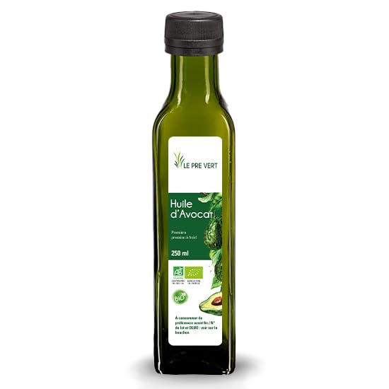 HUILE D'AVOCAT BIO - Source d'Oméga 6 9 - Le Pré Vert - 250 ml - Vierge - Fabriquée et extraite à froid
