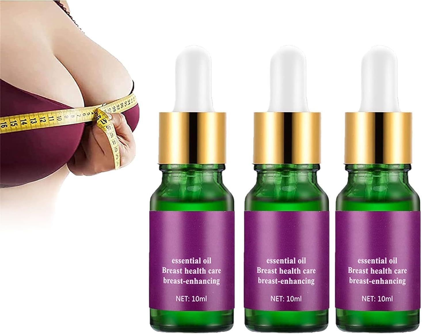 Specification: Name: Natural Firming Bust Essential Oil Net Content: 10ml bottle Shelf Life: 3 years Efficacy: Firming lifting, skin hydration, and improved elasticity Nursing Area: Breasts Package Includes: 3 Pcs Natural Firming Bust Essential Oil Highlights: Provides essential nutrients that lift and enlarge breasts for a fuller, more curvaceous appearance. Prevents breasts from sagging and stretching, keeping their shape perfectly perky. Moisturizes the skin and improves its elasticity, leaving skin soft, smooth, and supple. Uses natural plant extracts its gentle ingredients are non-irritating and safe for all skin types. Directions for Use: Apply a few drops of oil to the breasts and massage until fully absorbed. Preferably use daily for optimal results. P.when('A').execute(function(A) { A.on('a:expander:toggle_description:toggle:collapse', function(data) { window.scroll(0, data.expander. expander[0].offsetTop-100) }) }) Safety Warning This Product Is for External Use Only, Do Not Contact with Eyes. If Contact Occurs, Please Rinse Immediately with Clean Water. See moreInclusive Care for All: Suitable for all skin types and body shapes, this breast serum offers inclusive care. It's designed for breast massage, promoting breast health while providing a relaxing and rejuvenating experience. Fast and Impressive Results: Achieve fuller, rounder, and firmer breasts with noticeable results in just one month. The oil provides an impressive push-up effect, lifting and increg breast size while eliminating chest wrinkles and balancing hormones. Moisturizing and Nourishing: Deeply hydrates and nourishes the skin, leaving it soft, smooth, and supple. The essential oil provides deep nourishment to breast tissue, improving skin elasticity. Breast Enhancement and Firming: The essential oil promotes blood and lymphatic circulation, which enhances breast development, making them firmer and fuller over time. Natural and safe ingredients: Made from natural plant extracts such as green papaya, grapefruit extract, rose and pueraria lobata, this breast enhancement oil is gentle on the skin and suitable for all skin types.Description du produit Spécification : Nom : Huile essentielle naturelle raffermissante pour le buste Contenu net : 10ml bouteille Durée de conservation : 3 ans Efficacité : Lifting de la fermeté, hydratation de la peau et amélioration de son élasticité Site de soins infirmiers : Poitrine Le paquet comprend : 3 Pcs Huile essentielle naturelle raffermissante pour le buste Faits saillants : Fournit des nutriments essentiels qui soulèvent et agrandissent les seins pour une apparence plus pleine et plus courbée. Empêche les seins de s'affaisser et de s'étirer, gardant leur forme parfaitement guillerette. Hydrate la peau et améliore son élasticité, rendant la peau douce, lisse et souple. Utilise des extraits naturels de plantes, ses ingrédients doux sont non irritants et sans danger pour tous les types de peau. Mode d'emploi Appliquer quelques gouttes d'huile sur la poitrine et masser jusqu'à absorption complète. Utiliser de préférence quotidiennement pour des résultats optimaux. P.when('A').execute(function(A) { A.on('a:expander:toggle_description:toggle:collapse', function(data) { window.scroll(0, data.expander. expander[0].offsetTop-100) }) }) Avertissement De Sûreté This Product Is for External Use Only, Do Not Contact with Eyes. If Contact Occurs, Please Rinse Immediately with Clean Water. Voir plusSoins inclusifs pour tous : Convient à tous les types de peau et à toutes les formes de corps, ce sérum pour les seins offre des soins inclusifs. Il est conçu pour le massage des seins, favorisant la santé des seins tout en procurant une expérience relaxante et rajeunissante. Résultats rapides et impressionnants : Obtenez des seins plus pleins, plus ronds et plus fermes avec des résultats notables en seulement un mois. L'huile donne un effet push-up impressionnant, soulevant et augmentant la taille des seins tout en éliminant les rides de la poitrine et en équilibrant les hormones. Hydratant et nourrissant : Hydrate et nourrit en profondeur la peau, la laissant douce, lisse et souple. L'huile essentielle fournit une nutrition profonde aux tissus mammaires, améliorant ainsi l'élasticité de la peau. Amélioration et raffermissement des seins : L'huile essentielle favorise la circulation sanguine et lymphatique, ce qui améliore le développement des seins, les rendant plus fermes et plus pleins au fil du temps. Ingrédients naturels et sûrs : Fabriquée à partir d'extraits naturels de plantes tels que la papaye verte, l'extrait de pamplemousse, la rose et la pueraria lobata, cette huile d'amélioration mammaire est douce pour la peau et convient à tous les types de peau.Huile D'essence Naturelle Raffermissante pour La Poitrine, Huile Naturelle D'augmentation Mammaire, Courbes Naturelles D'augmentation Mammaire (3 Pièces)