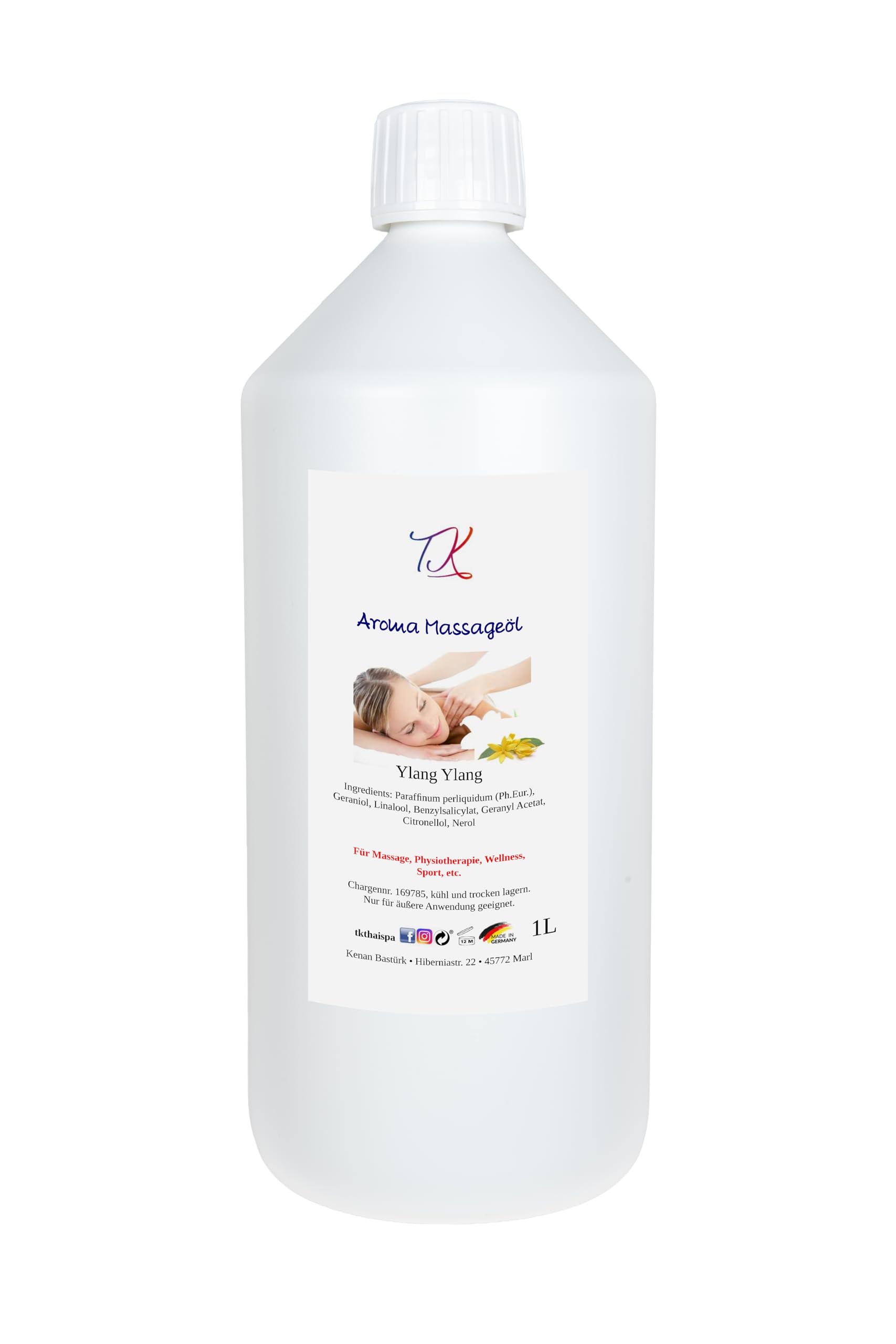 : TK THAISPA massage oil with a cheerful aroma was specially developed for professional Thai massage and has established itself over the years as the perfect massage oil. This massage oil is easy to handle and use for both the user and the client. It is 100 preservative-free, making it ideal for sensitive skin. Thanks to its low viscosity, the oil is thin and does not stick to the skin. Even a small amount ensures optimal glide. Stains on textiles can be easily washed off. The massage oil is made from Paraffinum perliquidum (Ph. Eur.). Cheerful aroma. store in a cool, dry place, away from light, in an airtight container. This high-quality product can last at least 12 months. The product should not be ingested and should not come into contact with the eyes or mucous membranes. Keep out of reach of children. Try TK THAISPA massage oil and discover for yourself how good it is. Treat yourself and your clients to a relaxing massage experience. This high-quality product comes in a large quantity and is perfect for professional use. Caution: This massage oil can be dangerous if swallowed or if it comes into contact with the respiratory system. In case of accidental ingestion, we strongly recommend that you immediately seek medical help or contact a poison control center and avoid vomiting. Directions for use: 1. Put a small amount of massage oil in your hand. 2. Rub the oil between your hands to warm it. 3. Apply the oil to the skin and massage gently. 4. Wash your hands thoroughly after use. 5. Do not get massage oil in your eyes or on mucous membranes, and do not ingest it. 6. Keep out of reach of children. Safety Warning: Caution: This massage oil can be dangerous if swallowed or if it comes into contact with the respiratory tract. The product should not be ingested and should not come into contact with the eyes or mucous membranes. Keep out of reach of children. See more