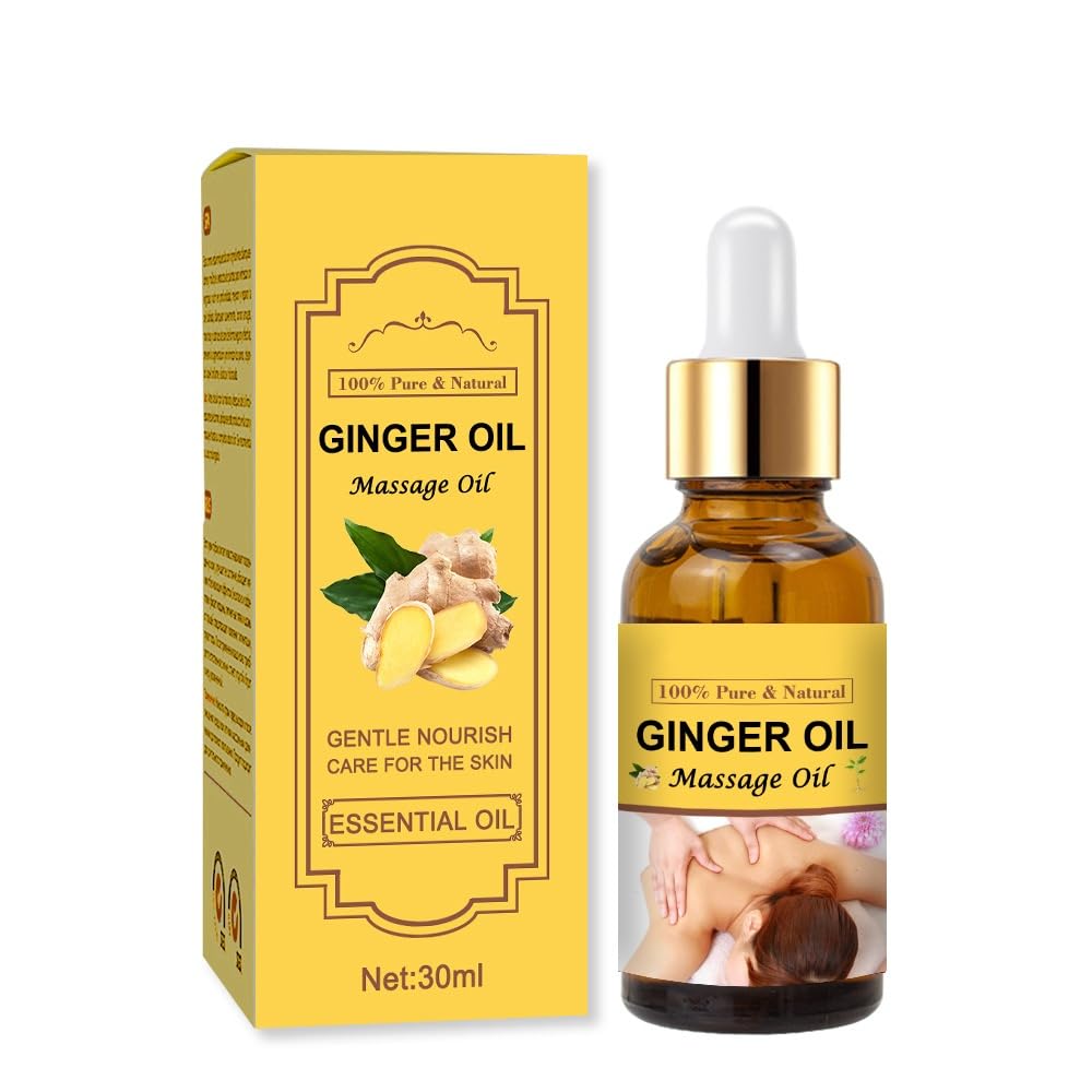 Huile de massage professionnelle au gingembre Récupération musculaire, détoxification et éclat du teint Qualité spa avec compte-gouttes pour Gua Sha et thérapie (100 ml)