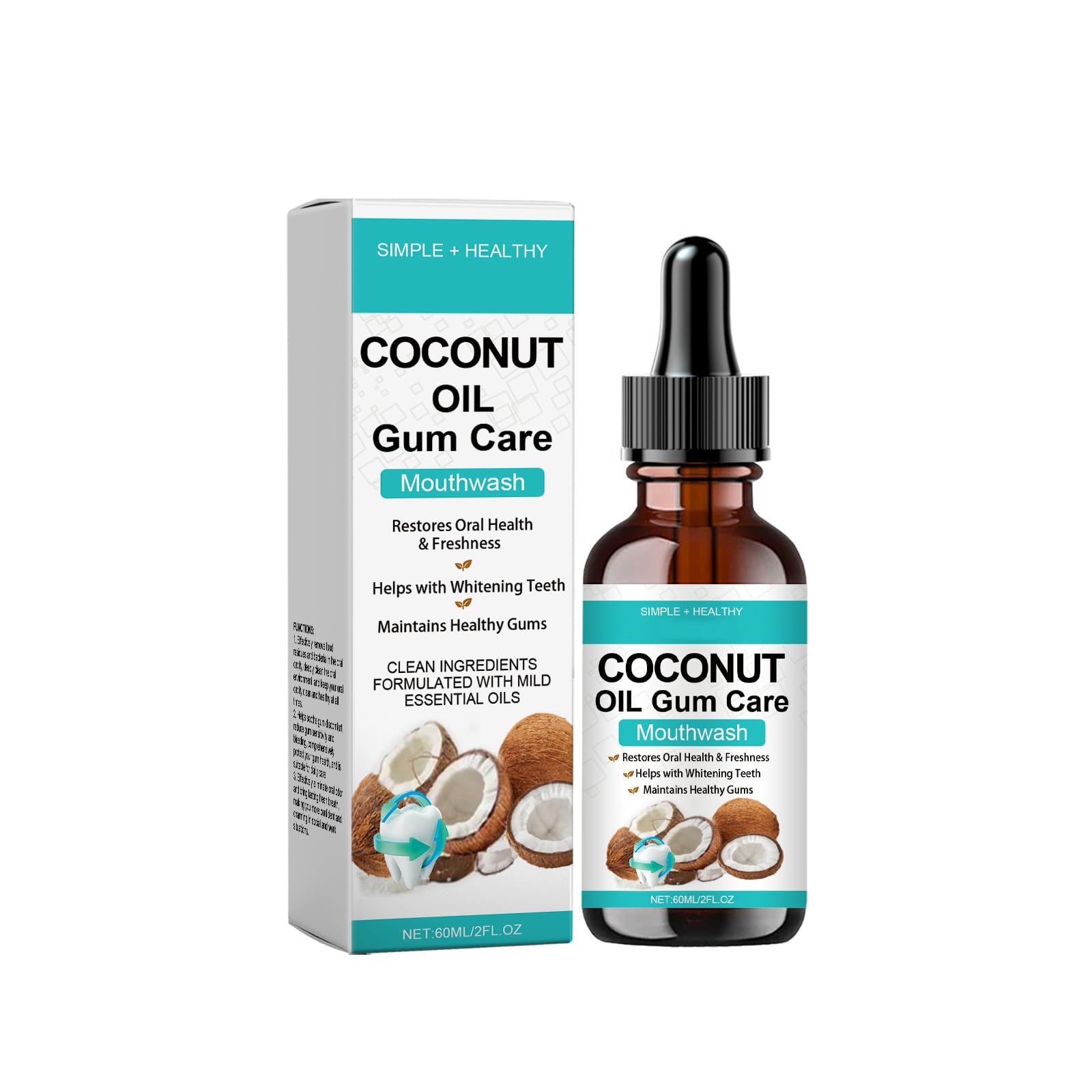 Huile De Menthe Poivrée Pour Blanchir Les Dents,Haleine Fraîche Et Gencives Saines,200ML,1PC,Noix de Coco Naturelle