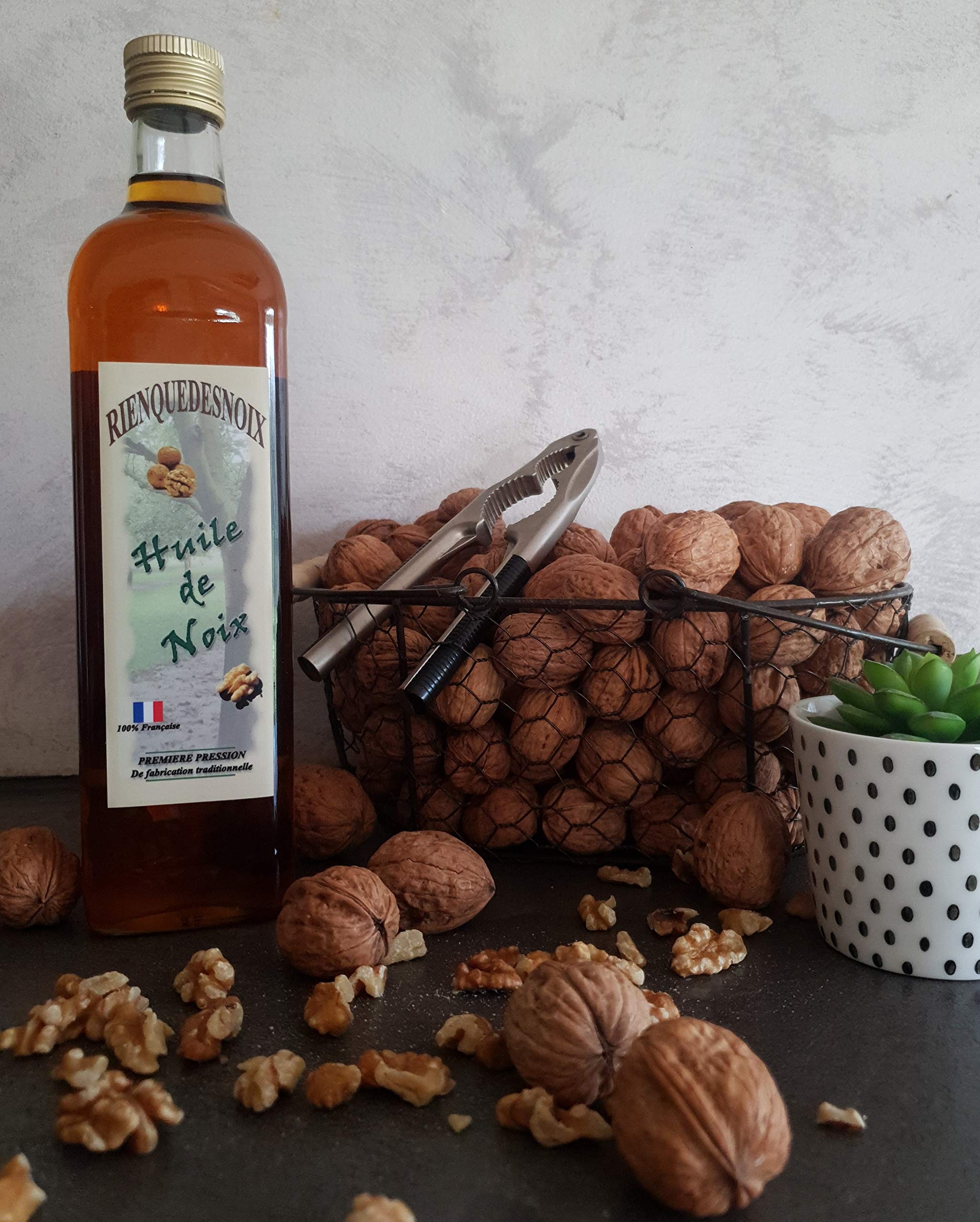 AN EXCEPTIONAL OIL: Walnut oil is a golden to light brown oil. With a very fragrant and fruity flavor, it is excellent in salads and with certain vegetables. It will perfectly complement your endive salads and green salads, adding richness and character. Drizzle a thin stream over steamed vegetables, or even, in tiny quantities, with langoustines or poached fish. Try a few drops on pork or veal to enhance their flavor. Enjoy without moderation! PROTECTED DESIGNATION OF ORIGIN: Made from walnuts grown exclusively on our farm, located in the Grenoble walnut production area in the Drôme region. Our walnut oil originates from the high-quality walnuts of the Dauphiné terroir. It's 100 French HANDCRAFTED: The walnut kernel is ground into a paste using a huge millstone. The paste is then transferred to a pan to be gently heated to 50 C. This paste is then conveyed to the press, where, under the pressure of the cylinder, the precious walnut oil slowly flows out, filling the entire oil mill with its aroma. Ingredients: Walnut Oil P.when('A').execute(function(A) { A.on('a:expander:toggle_description:toggle:collapse', function(data) { window.scroll(0, data.expander. expander[0].offsetTop-100) }) }) Instructions: Keep refrigerated even if unopened. Disclaimer AN EXCEPTIONAL OIL: Walnut oil is a golden to light brown oil. With its highly aromatic flavor and fruity notes, it's excellent in salads and with certain vegetables. It will perfectly complement your endive salads and green salads, adding richness and character. Drizzle a thin stream over steamed vegetables, or even, in tiny quantities, with langoustines or poached fish. Try a few drops on pork or veal to enhance their flavor. Enjoy without moderation! See moreFruity. AN EXCEPTIONAL OIL: Walnut oil is golden to light brown in color. With a very fragrant flavor, it has a very fruity taste. It is excellent in salads and with certain vegetables. It will perfectly complement your endive salads and green salads, adding richness and character. Enjoy without moderation!Description du produit UNE HUILE EXCEPTIONNELLE : L'huile de noix est une huile de couleur dorée à brun clair. Dotée d'une saveur très parfumée, elle a goût très fruité. Elle est excellente dans les salades et avec certains légumes. Elle accompagnera à merveille vos salades d'endives, salades vertes, elle leur apporte richesse et caractère. Déposée en un mince filet sur des légumes vapeur, voire, en infime quantité, avec des langoustines ou un poisson poché. Essayez quelques gouttes sur des viandes de porc ou veau pour les mettre en valeur. A consommer sans modération ! APPELLATION ORIGINE PROTÉGÉE : Fabriquée à partir des noix issues uniquement de notre exploitation, située en Zone de production de la noix de Grenoble, dans la Drôme. Notre huile de noix tient son origine des noix de qualité sur le terroir dauphinois. Elle est 100 Française FABRICATION ARTISANALE : Le cerneau est réduit en pâte, grâce à une énorme meule. La pâte est conduite vers la poêle, pour être chauffée délicatement à une température de 50 C. Cette pâte est ensuite acheminée dans la presse, où sous la pression du vérin, la précieuse huile de noix coule lentement, et embaume de son parfum toute l'huilerie. Ingrédients Huile de noix P.when('A').execute(function(A) { A.on('a:expander:toggle_description:toggle:collapse', function(data) { window.scroll(0, data.expander. expander[0].offsetTop-100) }) }) Mode d'emploi Conserver au réfrigérateur même si pas ouverte Clause de non-garantie UNE HUILE EXCEPTIONNELLE : L'huile de noix est une huile de couleur dorée à brun clair. Dotée d'une saveur très parfumée, elle a goût très fruité. Elle est excellente dans les salades et avec certains légumes. Elle accompagnera à merveille vos salades d'endives, salades vertes, elle leur apporte richesse et caractère. Déposée en un mince filet sur des légumes vapeur, voire, en infime quantité, avec des langoustines ou un poisson poché. Essayez quelques gouttes sur des viandes de porc ou veau pour les mettre en valeur. A consommer sans modération ! Voir plusFruitée. UNE HUILE EXCEPTIONNELLE : L'huile de noix est une huile de couleur dorée à brun clair. Dotée d'une saveur très parfumée, elle a goût très fruité. Elle est excellente dans les salades et avec certains légumes. Elle accompagnera à merveille vos salades d'endives, salades vertes, elle leur apporte richesse et caractère. A consommer sans modération !.Huile de Noix 75cl - 100 Française - Production artisanale 750 ml (Lot de 1)
