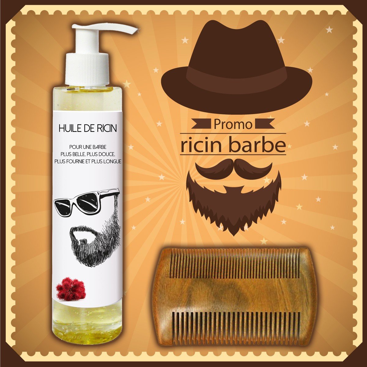 Huile de ricin barbe + peigne barbe en bois de santal antistatique - 100 ml