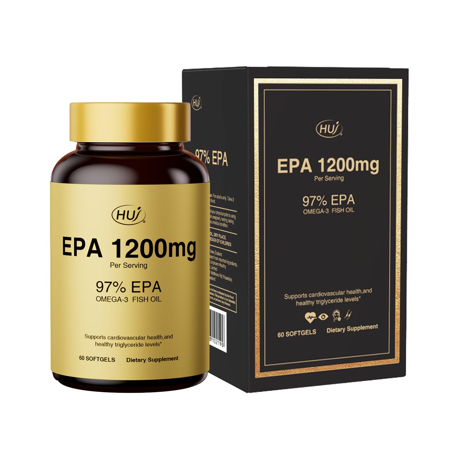 HUJ 97% EPA Omega-3 Fish Oil - 1200mg EPA Fish Oil Wild-Caught Sustainably Sourced - Suppprts Cardiovascular Health & Healthy Triglyceride lewels* - 60 Softgels