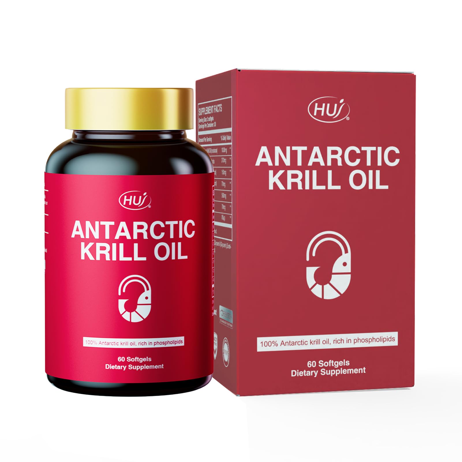HUJ Antarctic Krill Oil 1000mg with Omega-3s EPA DHA Astaxanthin Phospholipids and Choline - Sustainably Sourced - 60 Softgels
