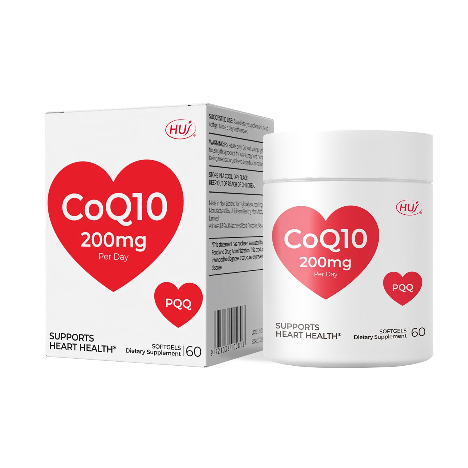 HUJ CoQ10 200mg Per Day - Heart Health & Cellular Energy Support with Coenzyme Q10 Vitamin E & PQQ - 60 Softgels