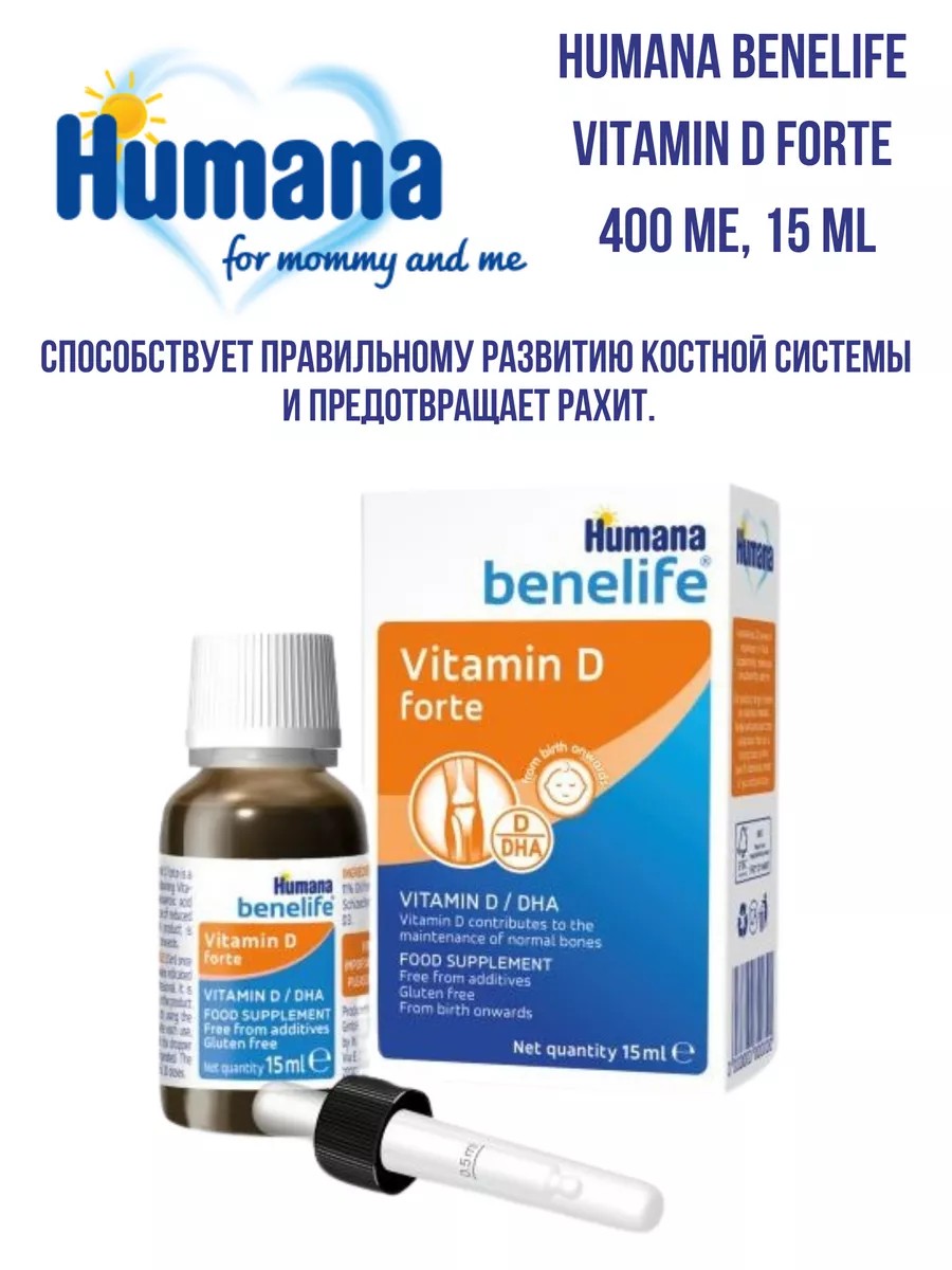 Витамин D от Humana Benelife способствует правильному развитию костной системы и предотвращает рахит.