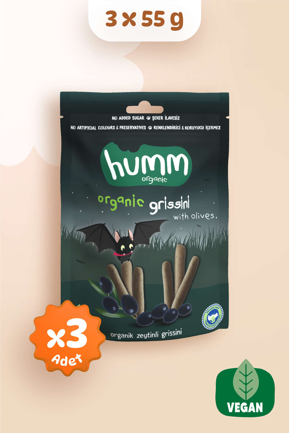 Organik Vegan Zeytinli Grissini Atistirmalik Paketi - 3 Adet Grissini sevenler için harika bir tercih olan yeni Humm Organic Zeytinli Grissini, hem lezzetli hem de besleyicidir. Glutensiz, vegan ve organik içerige sahip bu grissiniler, spordan sonra enerji takviyesi veya hafif bir ara ögün için mükemmel bir atistirmaliktir. Organik Vegan Zeytinli Grissini Hakkinda Humm Organic Organik Vegan Zeytinli Grissini, lezzetli ve besleyici bir atistirmalik olarak sizlere sunuluyor. Bu vegan grissini, organik içeriklerle üretilmis olup vegan yasam tarzini benimseyenler için mükemmel bir tercihtir. Renklendirici ve koruyucu içermez. Içindekiler Organik Bugday Unu Su Organik Zeytin Ezmesi ( 9,3) Organik Zeytinyagi Organik Maya Deniz Tuzu Besin Degerleri Enerji: 100g için 1866 Kj, Bir Paket (55g) için 1026 Kj Kalori: 100g için 446 Kcal, Bir Paket (55g) için 245 Kcal Yag: 100g için 10g, Bir Paket (55g) için 5,5g Doymus Yag: 100g için 1,6g, Bir Paket (55g) için 0,9g Karbonhidrat: 100g için 76g, Bir Paket (55g) için 42g Seker: 100g için 3g, Bir Paket (55g) için 1,7g Lif: 100g için 6,2g, Bir Paket (55g) için 3,4g Protein: 100g için 10g, Bir Paket (55g) için 5,5g Tuz: 100g için 1,7g, Bir Paket (55g) için 0,9g Kullanimi Özel olarak hazirlanmis olan bu grissini, zeytin ezmesi ile zenginlestirilmis ve organik zeytinyagi ile lezzetlendirilmistir. Her bir paket, enerji verici ve doyurucu bir seçenek sunar. Organik Vegan Zeytinli Grissini, ögle yemegi, atistirmalik veya çay saatleri için harika bir tercihtir ve her yas grubundan damak tadina uygundur. 1 yas üstü her çocuk ve yetiskinin tüketimi için uygundur. Grissini Hakkinda Grissini, Italyan mutfaginin essiz bir lezzeti olan ince ve çitir çubuk ekmegi olarak bilinir. Bu zarif atistirmalik, özellikle Italyan restoranlarinin menülerinde sikça bulunur, ancak dünya çapinda popülerligi giderek artmaktadir. Grissini, sadece lezzetiyle degil ayni zamanda zarif sunumuyla da dikkat çeker. Grissinilerin tarihi, 17. yüzyila kadar uzanir. Bu lezzetli çubuk ekmegi, Torino, Italya'nin kökenlerine dayanir. Ilk baslarda, Grissini, özellikle Kral Vittorio Amedeo II döneminde, çubuk ekmegi olarak sikça tüketilen bir gida olarak ortaya çikti. Daha sonra restoranlar ve pastaneler tarafindan benimsendi ve bu lezzetli atistirmalik Italyan mutfaginin vazgeçilmez bir parçasi haline geldi. Grissiniler, çesitli lezzetlerle ve sekillerle sunulabilir. Ince ve uzun çubuklar olarak geleneksel olarak sunulan Grissini, artik pek çok farkli versiyonda bulunabilir. Italyan peynirleri, susam tohumlari, zeytin yagi, tuz ve baharatlar gibi çesitli malzemelerle tatlandirilabilirler. Ayrica, bazen hamurun içine yerlestirilen peynir, jambon veya zeytin gibi malzemelerle doldurulurlar. Grissiniler, genellikle özel etkinlikler, kokteyller, partiler ve özellikle aperatiflerle birlikte sunulur. Ince ve çitir dokusu, çesitli soslar veya dip soslarla mükemmel bir sekilde eslestirilebilir. Bunun yani sira, bazen çorba veya salata gibi yemeklerin yaninda da servis edilir. Grissini, herhangi bir yemegi daha zarif ve keyifli hale getirebilen çok yönlü bir atistirmaliktir. Grissiniler, dünya genelindeki Italyan restoranlarinin menülerinde sikça bulunmasinin yani sira, marketlerde ve gurme magazalarinda da genis bir sekilde satilmaktadir. Ayrica evde yapimi da oldukça popülerdir ve herkesin kendi damak zevkine göre özellestirebilecegi bir atistirmaliktir. Diyette Grissini Tercihi Diyet yaparken, düsük kalorili ve besleyici atistirmaliklara yönelmek önemlidir. Humm Organic Zeytinli Grissini, "Diyette grissini yenir mi?" sorusunun cevabini verir. Bu krakerler, düsük kalorili olmalarinin yani sira organik ve glutensiz içerikleriyle saglikli bir diyetin parçasi olabilirler. Bu grissinilerin içindekiler arasinda organik bugday unu, su, organik zeytin ezmesi ( 9,3), organik zeytinyagi, organik maya ve deniz tuzu bulunur. Bu dogal bilesenler, her isirikta sundugu zeytin tadiyla sizi Ege'ye götürür. Ayrica, organik ve vegan sertifikalidir, böylece dogaya ve hayvanlara saygi gösterir. Vegan ve Besleyici Vegan beslenmeyi tercih edenler için bu grissiniler ideal bir atistirmalik grubudur. Organik ve besleyici malzemeler kullanilarak hazirlanir ve seker ilavesizdir. Bu nedenle, hem lezzetli hem de vegan bir atistirmalik arayanlar için uygundur. Spor yaparken veya egzersiz sonrasi enerjiye ihtiyaciniz varsa, Humm Organic Zeytinli Grissini lezzetiyle sizi büyüleyecek ve spor çantanizin vazgeçilmezi olacak. Hafif yapisi ve doyurucu içerigi, vücudu yeniden enerjiyle doldurmaniza yardimci olabilir. Humm Organic ile Lezzet Dolu Anlar Humm Organic, saglikli ve lezzetli atistirmaliklari ile ailece gönlünüz rahat tüketebileceginiz ürünler sunar. Hemen Humm Organic Organik Vegan Zeytinli Grissini'yi deneyin, tazeligi kesfedin. Alerjen içerikler koyu renkte belirtilmistir.