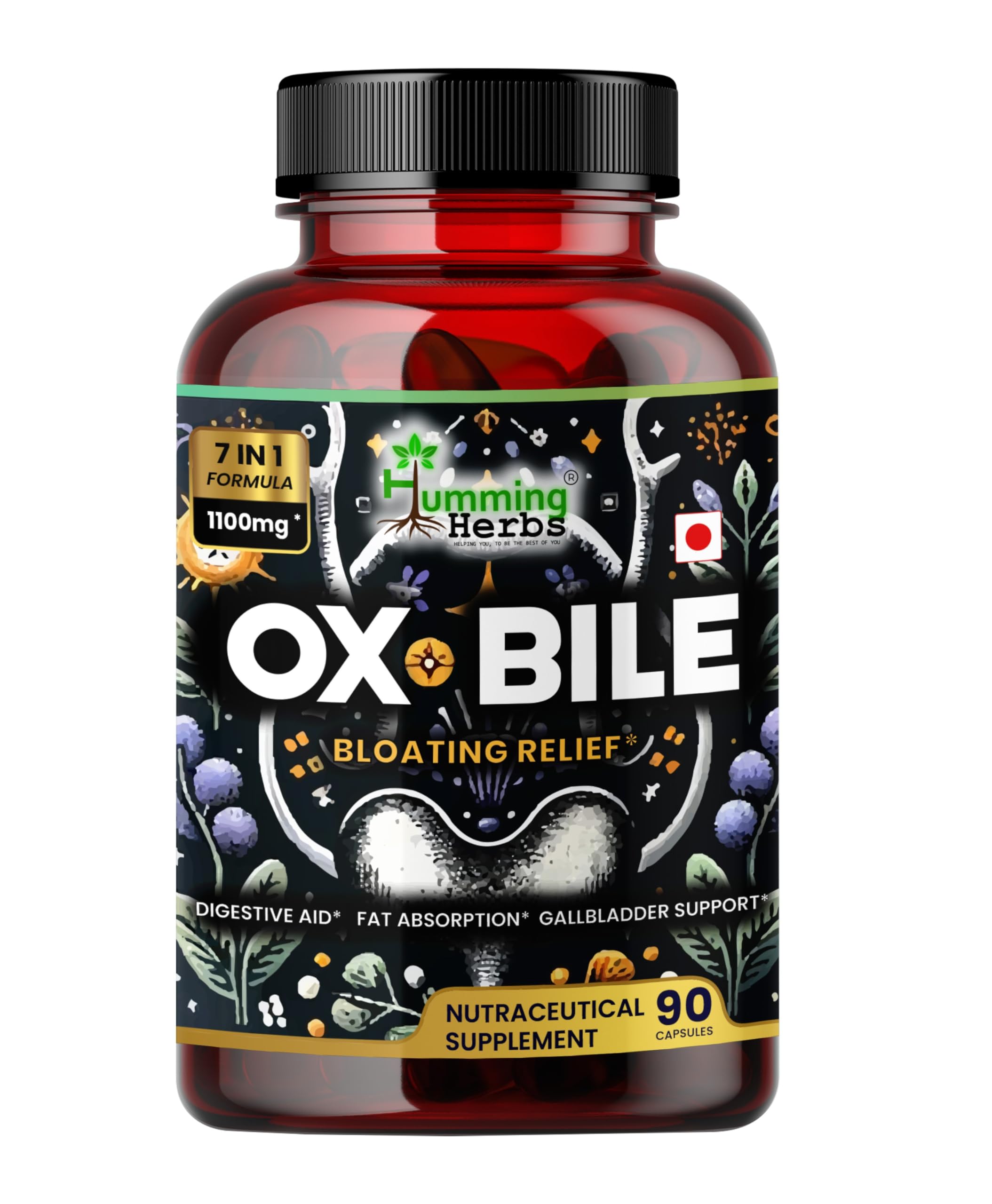 Humming Herbs Ox Bile with Digestive Enzymes & Pre/Probiotics 90 Veg Caps Cholic Acid Inulin Betaine HCl Peppermint Bromelain Healthy Digestion & Nutrient Absorption - Bile Salts Supplement