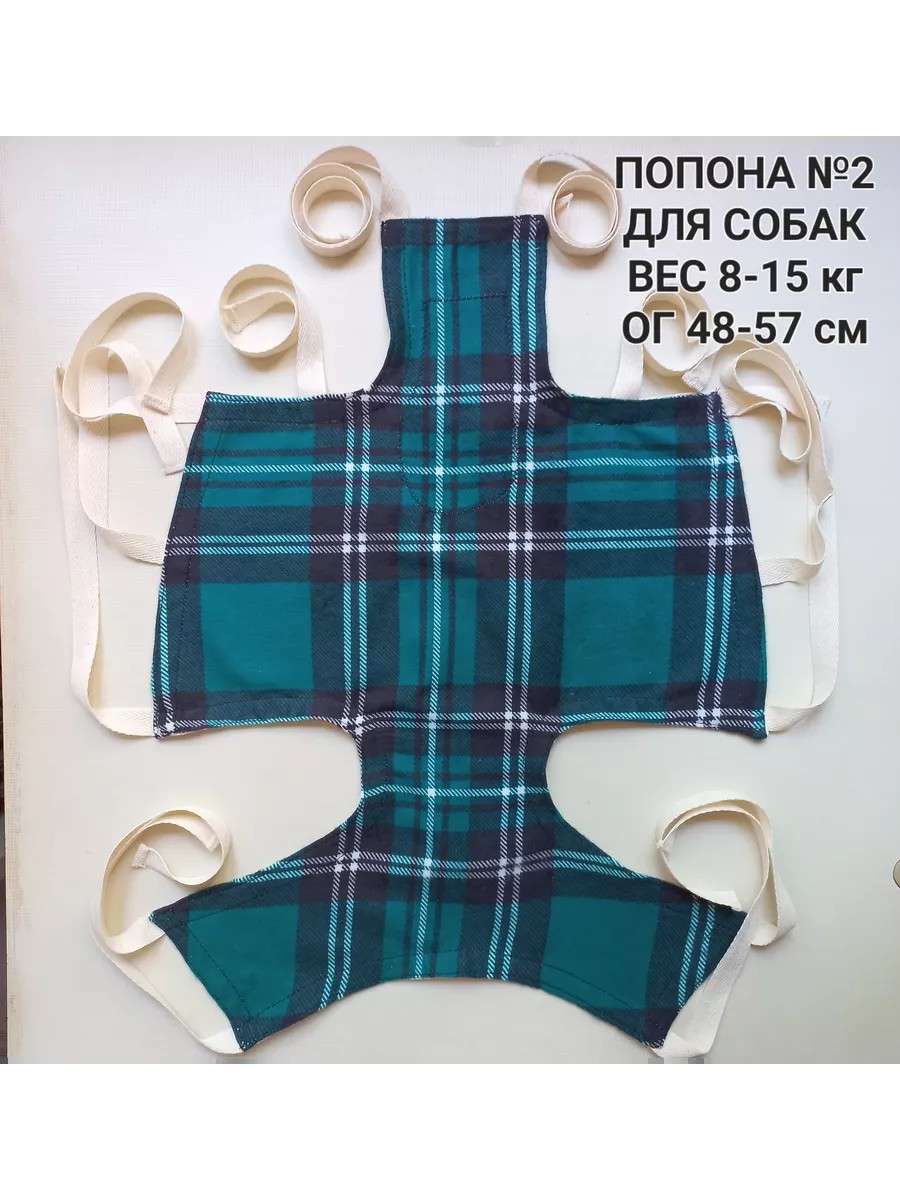Попона из комфортной фланели защищает швы после операции, дополнительно фиксирует перевязочный материал. Фланель отлично пропускает воздух, что способствует быстрому заживлению ран. Все края попоны обшиты хлопковой тесьмой для правильного прилегания попоны к телу животного. Концы завязок из тесьмы подшиты. На попоне предусмотрен вырез для кобелей. Обязательно попона обрабатывается горячим утюгом и упаковывается. Попона послеоперационная №2 подходит для собак малых и средних пород весом от 8 до 15 кг и обхватом груди 48-57 см.