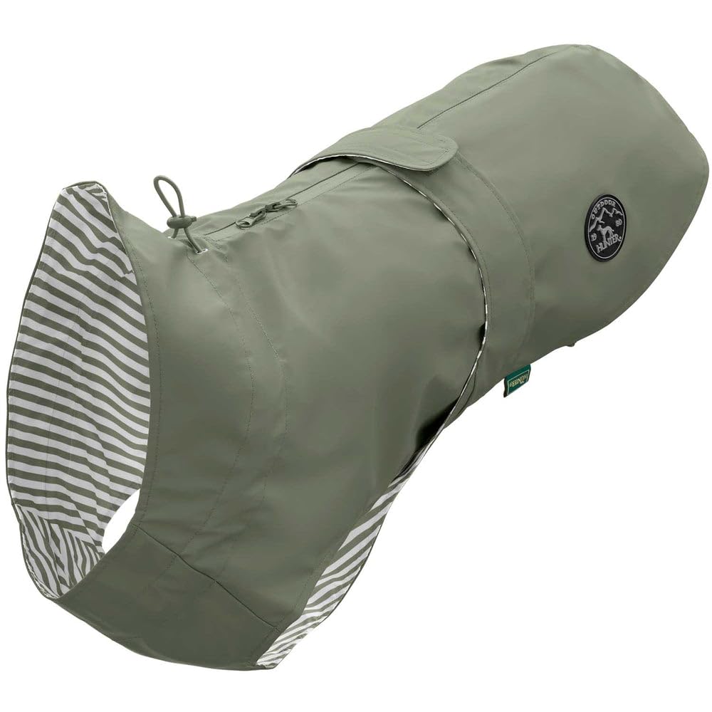 Allow Milford!It resembles the classic friezenerz and is as practical and functional as the ""human variant"" of the reliable must-have.The special needs of four -legged friends were of course taken into account when designing Milford.Elastic ligaments on the hind legs ensure a perfect fit of the light coat, even with strong gusts of wind.Thanks to the ergonomic fit, the sensitive neck as well as the back and belly of the dog are perfectly protected without restricting freedom of movement.The Milford dog coat is closed in no time and individually using a wide Velcro.This is closed on the back and can be adjusted in no time if it turns out in the course of the wet walk that Milford is a little too wide or too tight.In addition to an opening for the D-ring of a collar, the coat is also ideal for ""dishwasher"" thanks to waterproof and individually adjustable two-way zip.The appealing, striped inner lining made of smooth polyester fabric makes wearing the coat particularly pleasant - completely whether it is a frizzy or smooth, short or long fur.The maintenance of the Milford coat is very simple: With a soft, damp cloth, any dirt can simply be wiped off, unless the rain has already taken over in a very natural way.Alternatively, the washing machine provides valuable services at 30 C to let the colors shine again.Ideal for two- and four-legged friends who want to show the ""dirty weather"" the cold snout!size: 75 adjustment options neck: 44 - 84 cm, adjustment options belly: 65 - 87 cm.Washable at 30 C.Elastic loops for the hints.Individually adjustable belly belt with Velcro fastener, fastening the leash to dishes and collar possible.Light wind -repellent and waterproof raincoat for dogs, with neck collar and closed belly side.Gestatten, MILFORD! Er ähnelt dem klassischem Friesennerz und ist ebenso praktisch und funktional wie die »Menschen-Variante« des verlässlichen Must-Haves. Die besonderen Bedürfnisse von Vierbeinern wurden beim Design von MILFORD selbstverständlich berücksichtigt. So sorgen elastische Bänder an den Hinterläufen für einen perfekten Sitz des leichten Mantels, auch bei starken Windböen. Der empfindliche Hals sowie Rücken und Bauch des Hundes werden dank der ergonomischen Passform perfekt geschützt ohne die Bewegungsfreiheit einzuschränken. Geschlossen wird der Hunderegenmantel MILFORD im Handumdrehen und ganz individuell mittels breitem Klettband. Dieses wird auf dem Rücken verschlossen und kann ruckzuck angepasst werden wenn sich im Laufe des feuchtfröhlichen Spaziergangs herausstellt, dass MILFORD doch etwas zu weit oder zu eng sitzt. Neben einer Öffnung für den D-Ring eines Halsbandes, ist der Mantel dank wasserfestem und individuell verstellbarem Zwei-Wege-Reißverschluss auch für »Geschirrträger« ideal geeignet. Das ansprechende, gestreifte Innenfutter aus glattem Polyesterstoff macht das Tragen des Mantels besonders angenehm - völlig gleich ob krauses oder glattes, kurzes oder langes Fell. Die Pflege des MILFORD-Mantels gestaltet sich denkbar einfach: Mit einem weichen, feuchten Tuch kann jeglicher Schmutz einfach abgewischt werden, sofern das nicht bereits der Regen auf ganz natürliche Art und Weise übernommen hat. Alternativ leistet die Waschmaschine bei 30 C wertvolle Dienste, um die Farben wieder satt strahlen zu lassen. Ideal für Zwei- und Vierbeiner, die dem »Schmuddelwetter« die kalte Schnauze zeigen wollen!Größe: 75 Verstellmöglichkeiten Hals: 44 - 84 cm, Verstellmöglichkeiten Bauch: 65 - 87 cm. Bei 30 C waschbar. Elastische Schlaufen für die Hinterläufe. Individuell einstellbarer Bauchgurt mit Klettverschluss, Befestigung der Leine an Geschirr und Halsband möglich. Leichter windabweisender und wasserfester Regenmantel für Hunde, mit Halskragen und geschlossener Bauchseite.HUNTER Hunde-Regenmantel Milford, mit Geschirr- und Halsbandöffnung, 75, grün 75 Grün
