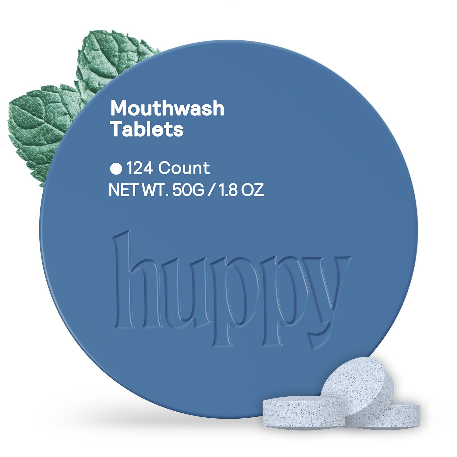 HUPPY Mouthwash Tablets with Nano Hydroxyapatite - Refreshes Breath and Remineralizes Teeth - Hydroxyapatite Tabs Perfect for Travel - Nanohydroxyapatite Mouthwash 124ct Cool Mint Flavor