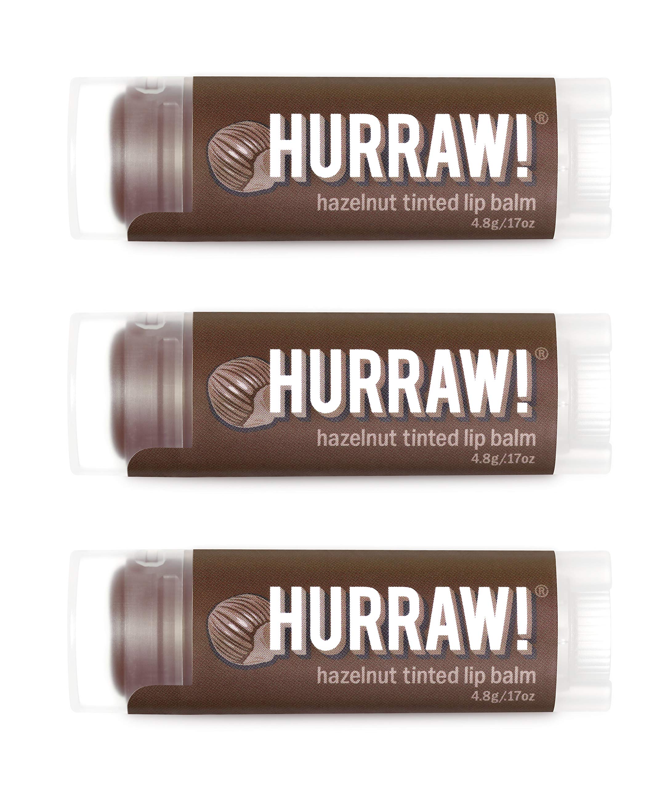It's not about us. Since 2010, we've made our balms with one thing in mind: YOU. Hurraw! strives to create a trusted product to be used by everyone regardless of lifestyle. Let's put the concept ahead of the profit, the user ahead of the maker, the collective ahead of the individual. FLAVORS: Almond, Apple, Banana, Black Cherry Tinted, Chai Spice, Chocolate, Coconut, Coffee Bean, Earl Grey, Grapefruit, Green Tea, Hazelnut Tinted, Huckleberry, Kapha (grapefruit ginger eucalyptus), Lemon, Licorice, Lime, Mint, Moon, Orange, Pineapple, Pitta (coconut mint lemongrass), Raspberry Tinted, Root Beer, Sun, Unscented, Vanilla Bean, Vata (almond cardamom rose), Watermelon, Wintermint. DETAILS: To ensure the integrity of our lip balms, we develop and manufacture fresh by individually pouring each balm in our USDA NOP (National Organic Program) and Ecocert certified facility. Our ingredients are also clearly and correctly listed on our balms. Plant based, cosmetic and USDA food grade. Derived from 100 natural sources and certified Ecocert COSMOS and NOP organic compliant. CRITERIA: Hurraw! Lip Balms are all natural, vegan, raw, made with premium fair trade ingredients, super smooth, not draggy, not sticky, not sweet, not too glossy, not too smelly. Never grainy. Long lasting and no melting in a back jean pocket! Made in Montana, USA. THREE 4.8g .17oz Oval Tubes of Hazelnut Tinted Lip Balm packaged in a white HURRAW! branded pillow box. Cacao bhringraj come together for a SHEER SUNSET BROWN TINT. Plant-based. Mild, yet delicious, hazel-nutty treat! Made with certified organic, vegan, and raw ingredients. Hurraw! Lip Balms are certified 100 all natural origin, cruelty and gluten free. Non-GMO. Bee Free, Shea Free, Soy Free and Palm Free.