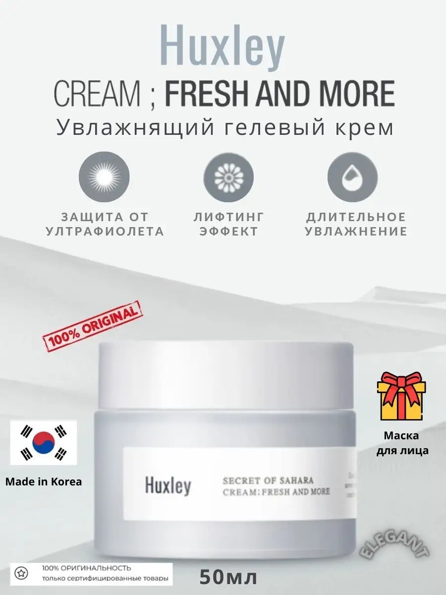 Освежающий крем с экстрактом кактуса Huxley (Хакслей) Cream Fresh And More мгновенно насыщает кожу влагой. Средство создает неощутимый барьер, который препятствует потери влаги и запирает ее в глубоких слоях эпидермиса, тем самым предотвращает обезвоживание. Эффективно борется с сухостью и шелушениями, а также восстанавливает гидро-липидный баланс. Защищает от влияния негативных факторов окружающей среды, таких как мороз, ветер, жара или пересушенный воздух. Повышает иммунитет кожи, ускоряет внутриклеточный метаболизм, способствует регенерации и успокаивает раздраженную кожу. Крем (фреш энд мо) имеет лёгкую гелевую текстуру, быстро впитывается и оставляет комфортное ощущение увлажнённости. Керамиды - являются основным структурным элементом гидролипидного слоя кожи, необходимого для защиты от агрессивных внешних факторов и профилактики потери влаги. Гиалуроновая кислота — отвечает за глубокое увлажнение кожи и поддержание на оптимальном уровне естественного ph-баланса кожи. Гиалуроновая кислота образует на кожу неосязаемый защитный слой, который препятствует испарению влаги и дарит комфортное ощущение свежести и увлажненности на лице. Масло жожоба - уникальный продукт, который очень благотворно влияет на состояние кожи. Масло оказывает регенерирующие, противовоспалительные, нормализующие действие, устраняет сухость и обезвоженность, глубоко питает кожу. Подходит для всех типов кожи. Способ применения: легкими массирующими движениями нанесите небольшое количество средства на кожу лица.