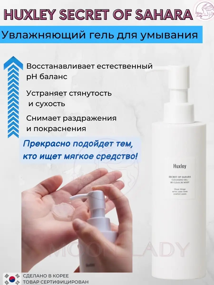 Huxley Secret of Sahara Cleansing Gel Be Clean, Be Moist, a moisturizing cleansing gel with prickly pear oil, gently cleanses and refreshes the skin, eliminates tightness and dryness, softens and soothes.