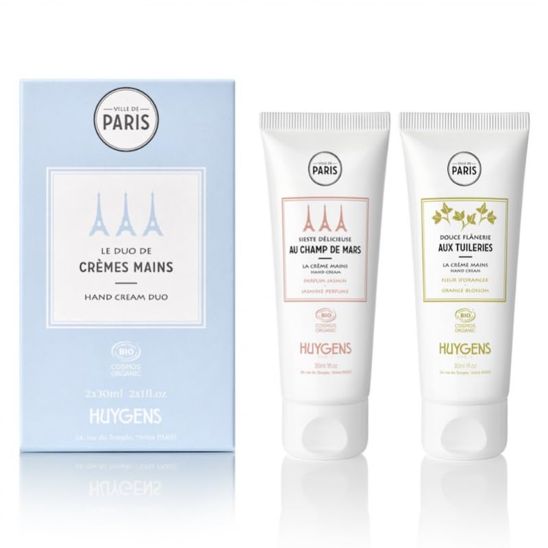 Huygens Duo de Crèmes Mains Bio, Hydratant et Apaisant, 2 x 30ml, Parfums Sieste Délicieuse au Champ de Mars et Douce Flânerie aux Tuileries