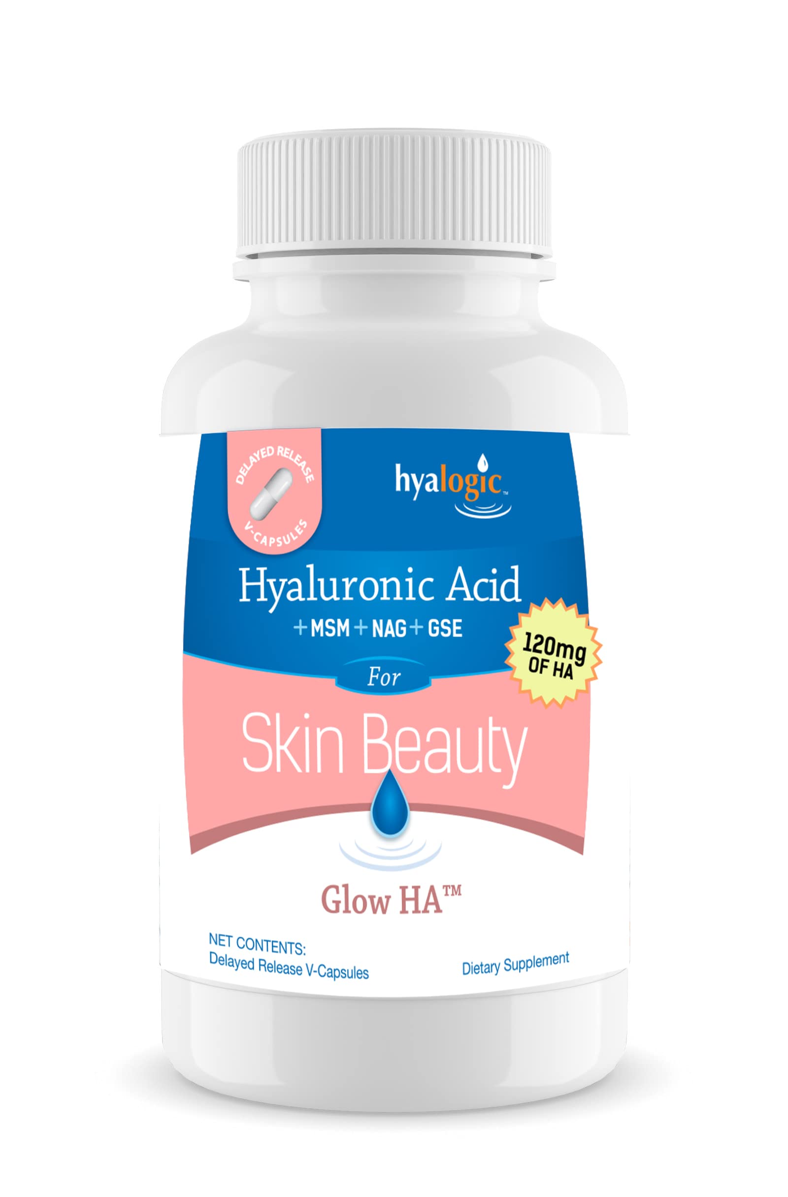 Hyalogic 120 Mg Hyaluronic Acid Delayed-Release Capsules Skin Supplement w/Glucosamine MSM Body Health Food Supplement w/Grape Seed Extract Vegan & Non-GMO Dietary Supplements (30 Count)