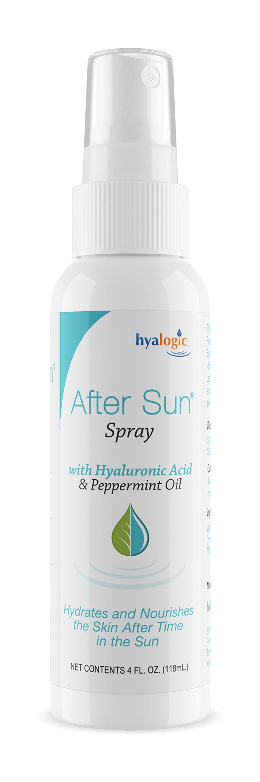 AFTER SUN SPRAY, A NATURAL LOTION SPRAY (4 Fl Ounces) The soothing Hyaluronic Acid and Peppermint Oil in Hyalogic After Sun Spray helps soothe sun-drenched skin. This spray can be used after sun exposure or anytime you want to hydrate your skin.