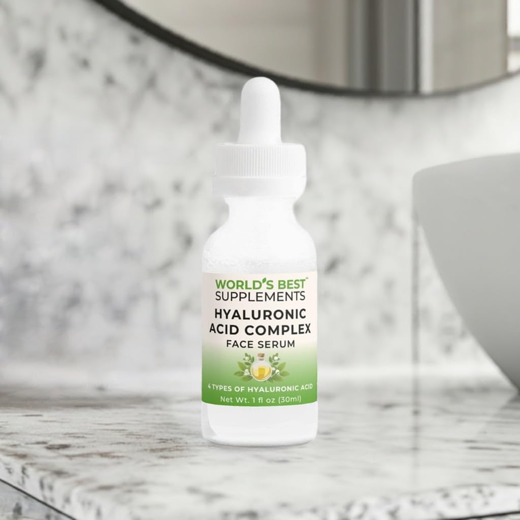 Hyaluronic Acid Complex Face Serum | 1 oz | Deep Hydrating Formula Boost Elasticity Reduce Wrinkles Smooth Fine Lines Non-Greasy | World's Best Supplements