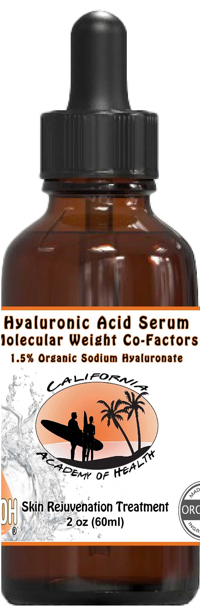 Hyaluronic Acid Serum 2 oz With Molecular Weight Co-Factors This lightweight serum is fortified with molecular weight hyaluronic and amino acids, plus nutrient-dense fruit and floral extracts to hydrate and nourish the skin. This unique botanical product is a synergistic blend of skin-rejuvenating co-factors. It's a true multifaceted product that hydrates, prevents visible signs of aging, soothes, firms, and brightens. Ingredients (unscented): 1.5 Organic Hyaluronic Acid (Sodium Hyaluronate) Triple Molecular Weights (5,000 Daltons (Oligo) 100,000 Daltons (Low) 1,000,000 Daltons (High)), Niacinamide (Vitamin B3), Panthenol (Provitamin B5), MSM (Organic Sulfur), Sodium PCA, Glucono Delta Lactone (GdL) – a Polyhydroxy acid (PHA), Amino Acid Complex (Arginine, Carnitine, Carnosine, Glycine, Histidine, Lysine, Proline, Sodium Phytate), Chelated Mineral Complex (5 essential minerals: Zinc, Silicon, Magnesium, Copper, and Iron). Base: Organic Aloe Vera Juice, Organic Bulgarian Rose Distillate, Organic Witch Hazel Extract. Botanical Extracts: Organic Blue Agave BioFerment, Watermelon BioFerment, White Truffle Algae, Hydrolyzed Rice Protein. Suggested use: apply topically in a serum directly to your face and neck morning and evening after cleansing. You can apply it to damp or dry skin.This lightweight serum is fortified with molecular weight hyaluronic and amino acids, plus nutrient-dense fruit and floral extracts to hydrate and nourish the skin. This unique botanical product is a synergistic blend of skin-rejuvenating co-factors. It's a true multifaceted product that hydrates, prevents visible signs of aging, soothes, firms, and brightens. Made with organic ingredients. With Molecular Weight Co-Factors. Hyaluronic Acid Serum 2 oz.