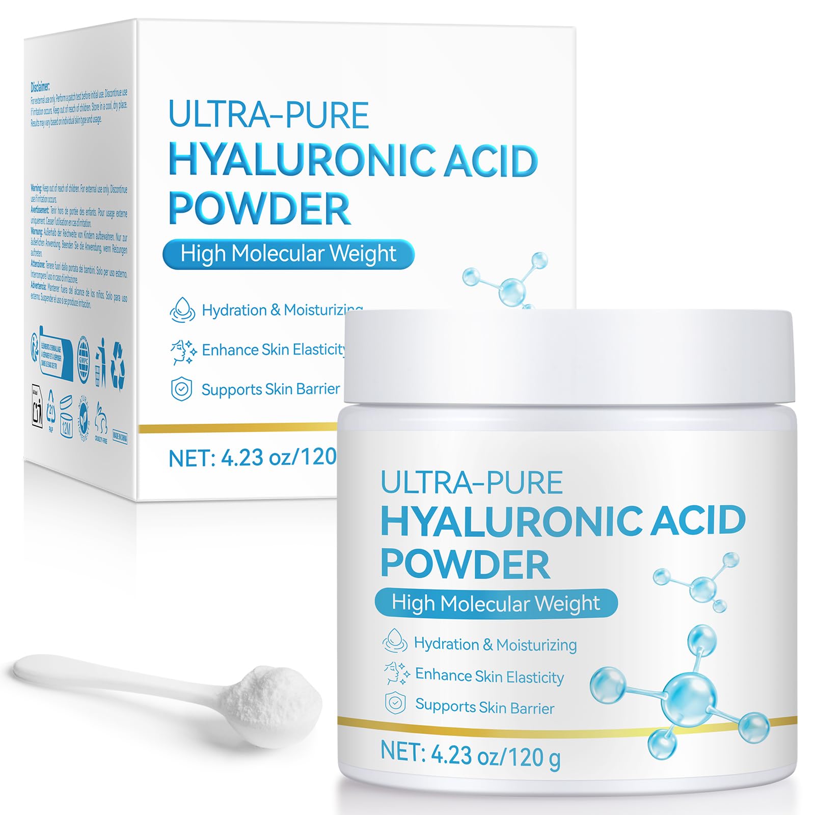 Hyaluronic Acid Powder for Face & Skin - High Purity DIY Serum & Moisturizer for Face Deep Hydration Anti-Aging Water-Soluble Preservative-Free for All Skin Types (4.23oz)